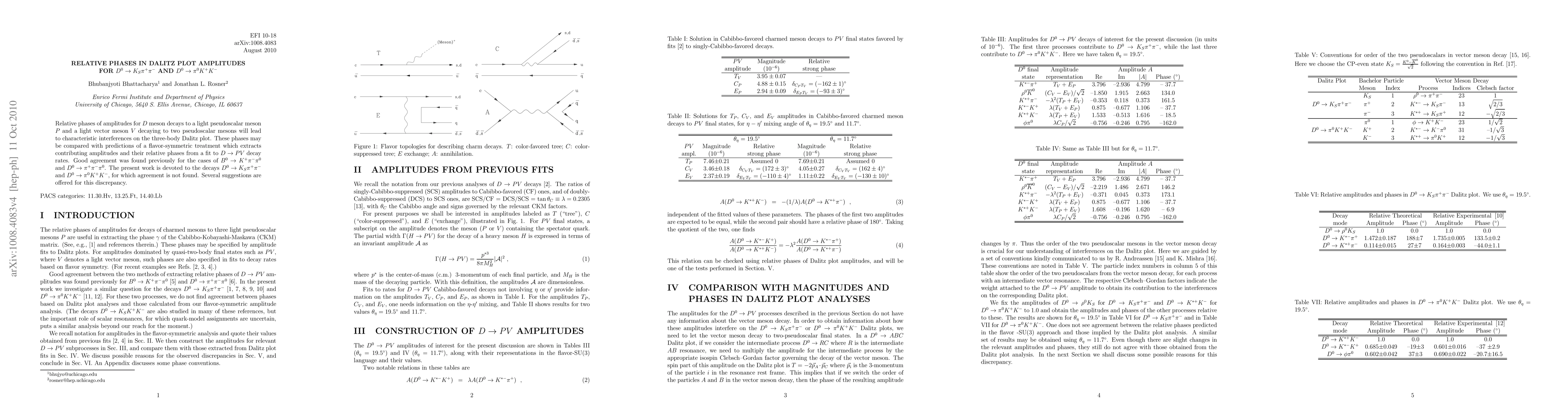 Relative phases of amplitudes for $D$ meson decays to a light pseudoscalar meson $P$ and a light vector meson $V$ decaying to two pseudoscalar mesons will lead to characteristic interferences on the three-body Dalitz plot. These phases may be compared with predictions of a flavor-symmetric treatment which extracts contributing amplitudes and their relative phases from a fit to $D \to PV$ decay rates. Good agreement was found previously for the cases of $D^0 \to K^- \pi^+ \pi^0$ and $D^0 \to \pi^+ \pi^- \pi^0$. The present work is devoted to the decays $D^0 \to K_S \pi^+ \pi^-$ and $D^0 \to \pi^0 K^+ K^-$, for which agreement is not found. Several suggestions are offered for this discrepancy.