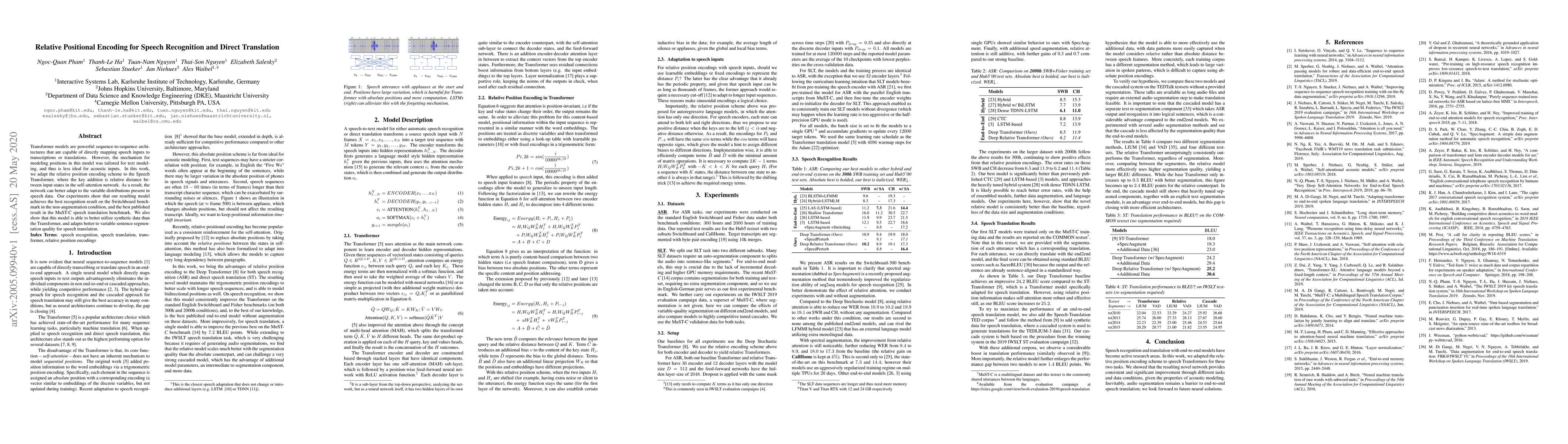 Researchers adapted a relative positional encoding scheme to improve speech recognition and translation in Transformer models, achieving best results on two benchmarks.