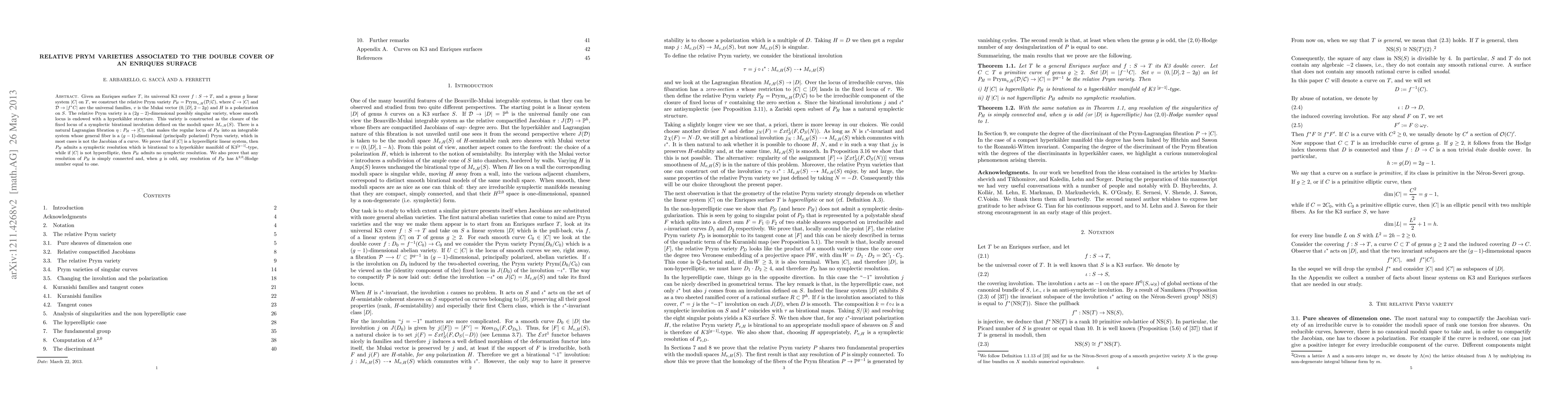 Given an Enriques surface $T$, its universal K3 cover $f: S\to T$, and a genus $g$ linear system $|C|$ on $T$, we construct the relative Prym variety $P_H=\Prym_{v, H}(\D/\CC)$, where $\CC\to |C|$ and $\D\to |f^*C|$ are the universal families, $v$ is the Mukai vector $(0,[D], 2-2g)$ and $H$ is a polarization on $S$. The relative Prym variety is a $(2g-2)$-dimensional possibly singular variety, whose smooth locus is endowed with a hyperk\"ahler structure. This variety is constructed as the closure of the fixed locus of a symplectic birational involution defined on the moduli space $M_{v,H}(S)$. There is a natural Lagrangian fibration $\eta: P_H \to |C|$, that makes the regular locus of $P_H$ into an integrable system whose general fiber is a $(g-1)$-dimensional (principally polarized) Prym variety, which in most cases is not the Jacobian of a curve. We prove that if $|C|$ is a hyperelliptic linear system, then $P_H$ admits a symplectic resolution which is birational to a hyperk\"ahler manifold of K3$^{[g-1]}$-type, while if $|C|$ is not hyperelliptic, then $P_H$ admits no symplectic resolution. We also prove that any resolution of $P_H$ is simply connected and, when $g$ is odd, any resolution of $P_H$ has $h^{2,0}$-Hodge number equal to one.