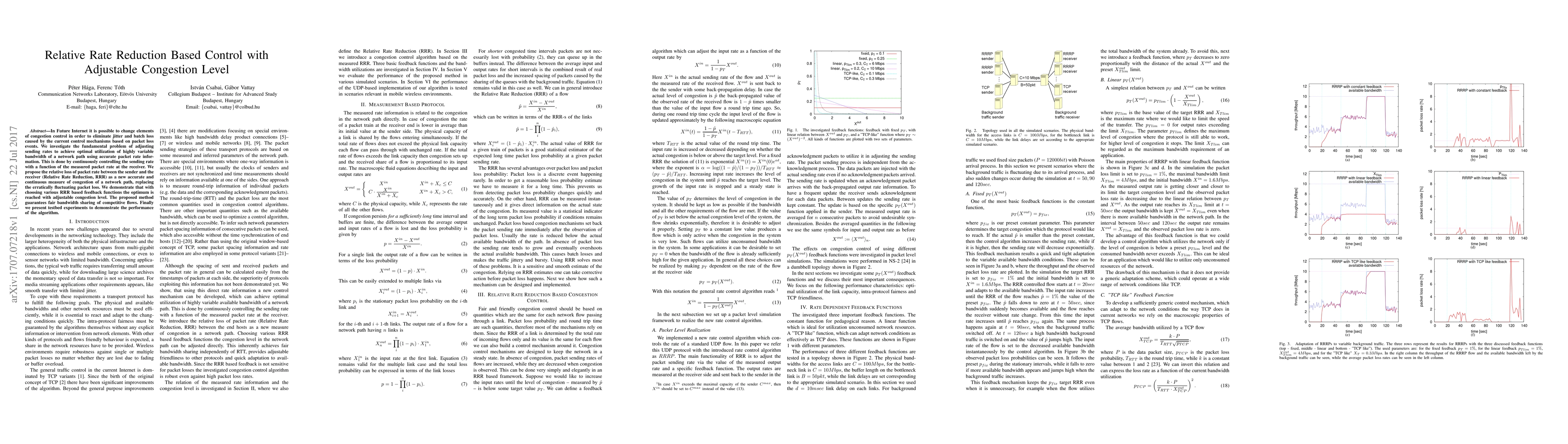 In Future Internet it is possible to change elements of congestion control in order to eliminate jitter and batch loss caused by the current control mechanisms based on packet loss events. We investigate the fundamental problem of adjusting sending rates to achieve optimal utilization of highly variable bandwidth of a network path using accurate packet rate information. This is done by continuously controlling the sending rate with a function of the measured packet rate at the receiver. We propose the relative loss of packet rate between the sender and the receiver (Relative Rate Reduction, RRR) as a new accurate and continuous measure of congestion of a network path, replacing the erratically fluctuating packet loss. We demonstrate that with choosing various RRR based feedback functions the optimum is reached with adjustable congestion level. The proposed method guarantees fair bandwidth sharing of competitive flows. Finally, we present testbed experiments to demonstrate the performance of the algorithm.