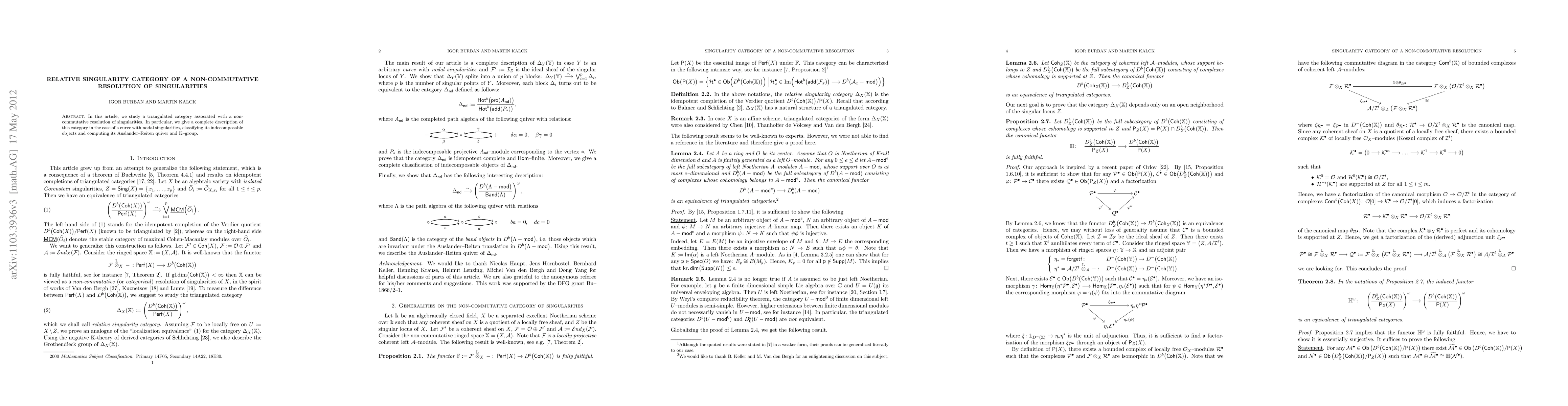 This paper explores the triangulated category of singularities linked to a non-commutative resolution, providing a detailed analysis for curves with nodal singularities, including classification of indecomposable objects and computation of the Auslander-Reiten quiver and K-group.