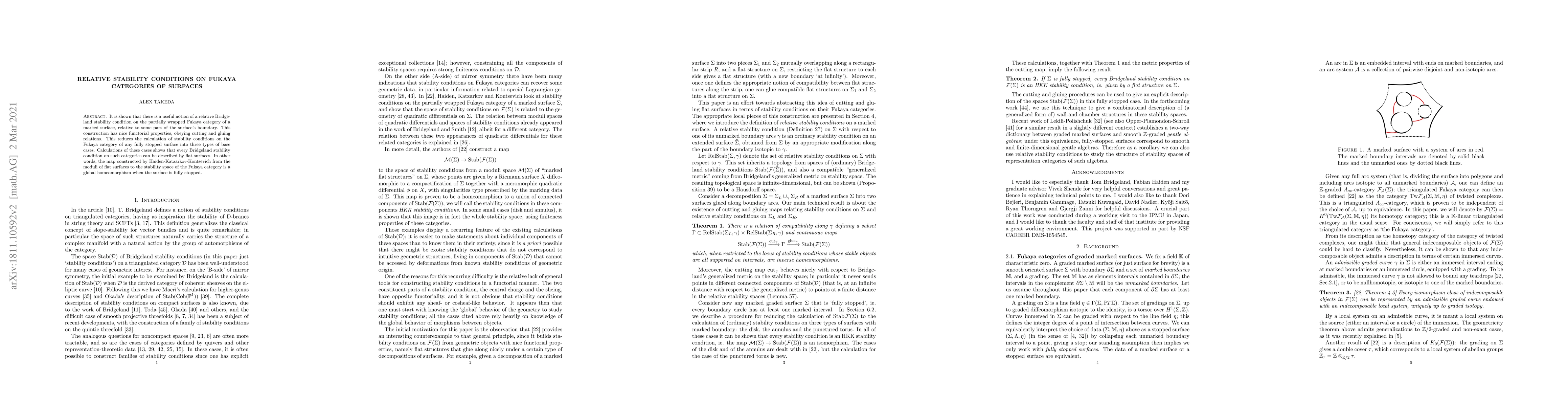 It is shown that there is a useful notion of a relative Bridgeland stability condition on the partially wrapped Fukaya category of a marked surface, relative to some part of the surface's boundary. This construction has nice functorial properties, obeying cutting and gluing relations. This reduces the calculation of stability conditions on the Fukaya category of any fully stopped surface into three types of base cases. Calculations of these cases shows that every Bridgeland stability condition on such categories can be described by flat surfaces. In other words, the map constructed by Haiden-Katzarkov-Kontsevich from the moduli of flat surfaces to the stability space of the Fukaya category is a global homeomorphism when the surface is fully stopped.