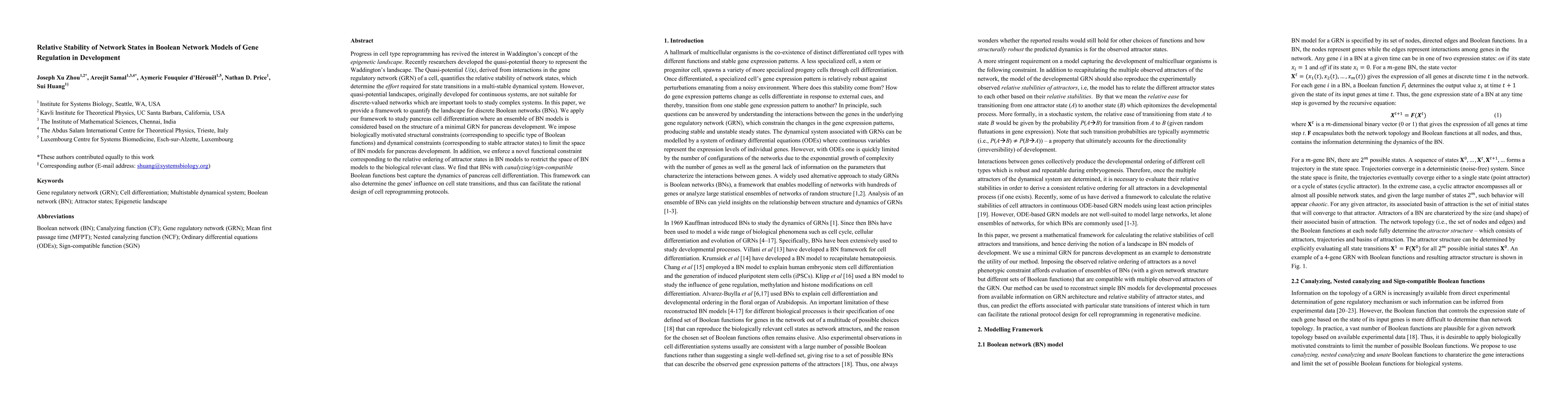 Progress in cell type reprogramming has revived the interest in Waddington's concept of the epigenetic landscape. Recently researchers developed the quasi-potential theory to represent the Waddington's landscape. The Quasi-potential U(x), derived from interactions in the gene regulatory network (GRN) of a cell, quantifies the relative stability of network states, which determine the effort required for state transitions in a multi-stable dynamical system. However, quasi-potential landscapes, originally developed for continuous systems, are not suitable for discrete-valued networks which are important tools to study complex systems. In this paper, we provide a framework to quantify the landscape for discrete Boolean networks (BNs). We apply our framework to study pancreas cell differentiation where an ensemble of BN models is considered based on the structure of a minimal GRN for pancreas development. We impose biologically motivated structural constraints (corresponding to specific type of Boolean functions) and dynamical constraints (corresponding to stable attractor states) to limit the space of BN models for pancreas development. In addition, we enforce a novel functional constraint corresponding to the relative ordering of attractor states in BN models to restrict the space of BN models to the biological relevant class. We find that BNs with canalyzing/sign-compatible Boolean functions best capture the dynamics of pancreas cell differentiation. This framework can also determine the genes' influence on cell state transitions, and thus can facilitate the rational design of cell reprogramming protocols.