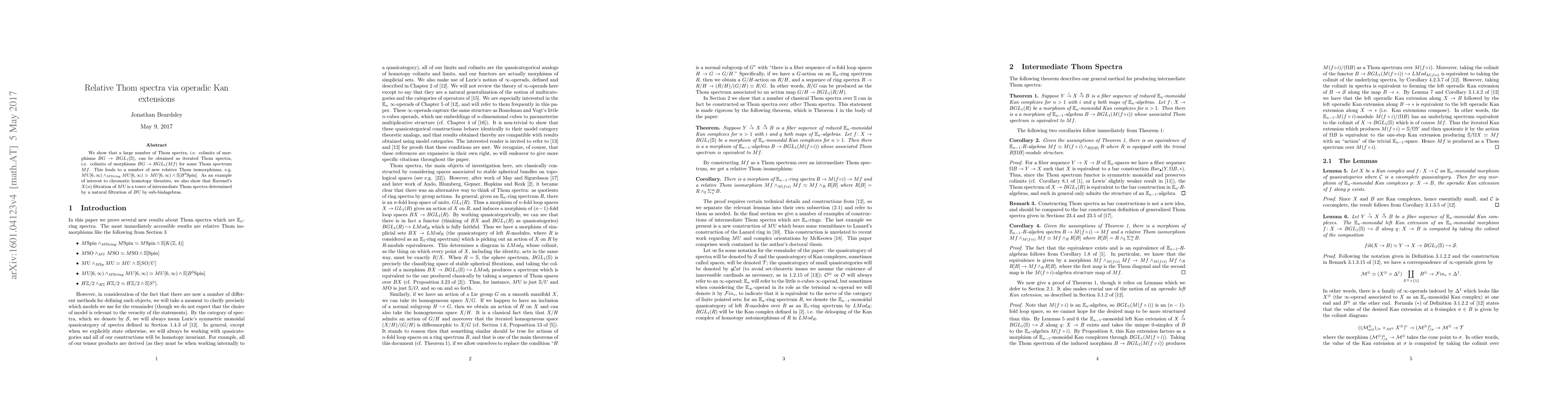 Summary: The paper demonstrates that many Thom spectra can be constructed using operadic Kan extensions, leading to new relative Thom isomorphisms and showing that Ravenel's $X(n)$ filtration of $MU$ corresponds to a tower of intermediate Thom spectra. This has implications for chromatic homotopy theory.
