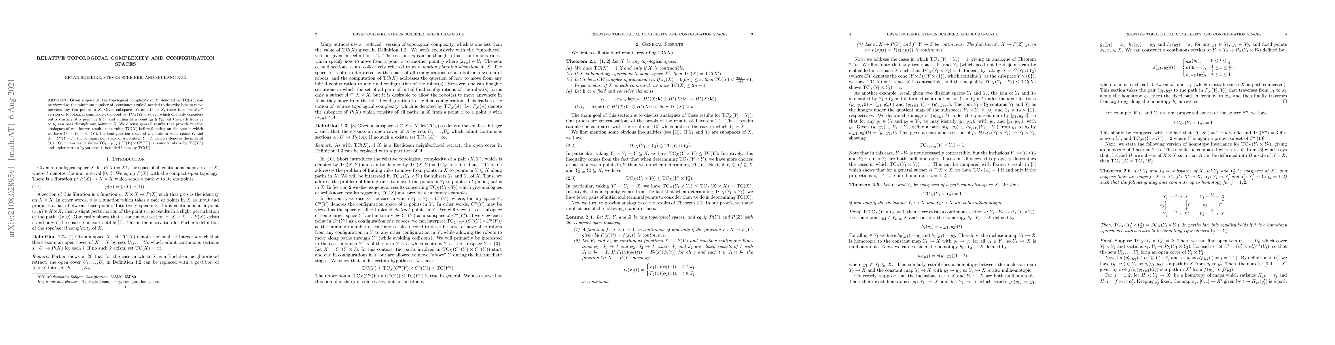 Given a space $X$, the topological complexity of $X$, denoted by $TC(X)$, can be viewed as the minimum number of "continuous rules" needed to describe how to move between any two points in $X$. Given subspaces $Y_1$ and $Y_2$ of $X$, there is a "relative" version of topological complexity, denoted by $TC_X(Y_1\times Y_2)$, in which one only considers paths starting at a point $y_1\in Y_1$ and ending at a point $y_2\in Y_2$, but the path from $y_1$ to $y_2$ can pass through any point in $X$. We discuss general results that provide relative analogues of well-known results concerning $TC(X)$ before focusing on the case in which we have $Y_1=Y_2=C^n(Y)$, the configuration space of $n$ points in some space $Y$, and $X=C^n(Y\times I)$, the configuration space of $n$ points in $Y\times I$, where $I$ denotes the interval $[0,1]$. Our main result shows $TC_{C^n(Y\times I)}(C^n(Y)\times C^n(Y))$ is bounded above by $TC(Y^n)$ and under certain hypotheses is bounded below by $TC(Y)$.