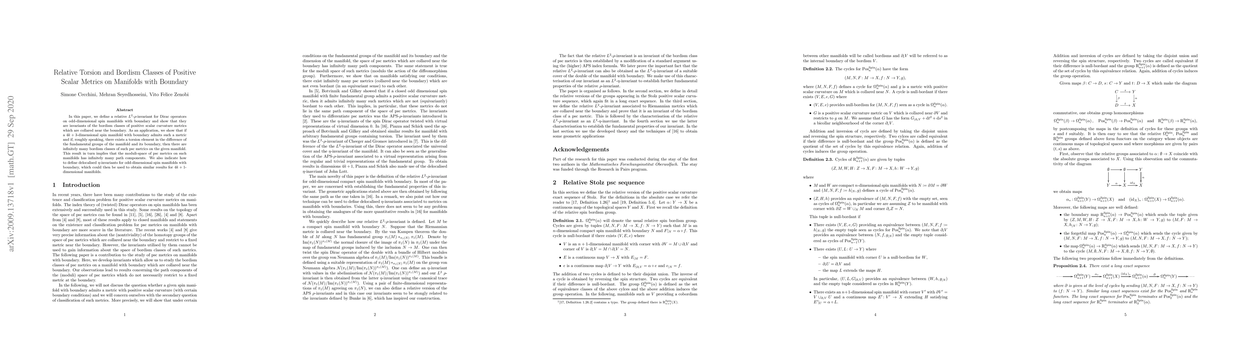 In this paper, we define a relative $L^2$-$\rho$-invariant for Dirac operators on odd-dimensional spin manifolds with boundary and show that they are invariants of the bordism classes of positive scalar curvature metrics which are collared near the boundary. As an application, we show that if a $4k+3$-dimensional spin manifold with boundary admits such a metric and if, roughly speaking, there exists a torsion element in the difference of the fundamental groups of the manifold and its boundary, then there are infinitely many bordism classes of such psc metrics on the given manifold. This result in turn implies that the moduli-space of psc metrics on such manifolds has infinitely many path components. We also indicate how to define delocalised $\eta$-invariants for odd-dimensional spin manifolds with boundary, which could then be used to obtain similar results for $4k+1$-dimensional manifolds.