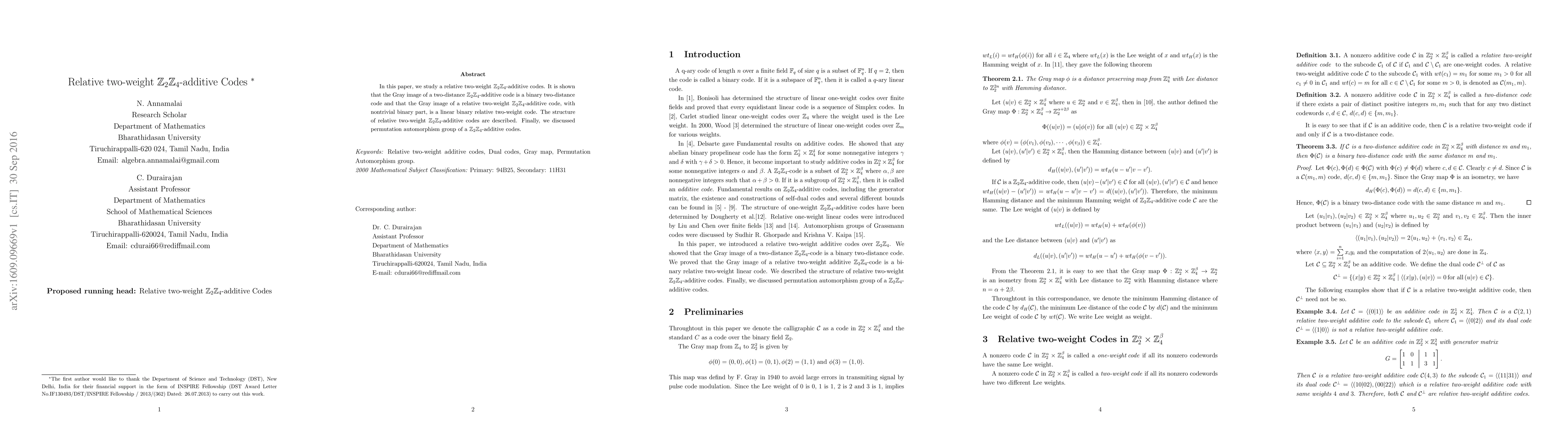 This paper investigates relative two-weight $\mathbb{Z}_2\mathbb{Z}_4$-additive codes, demonstrating that their Gray images yield binary two-distance codes, and explores the structure and permutation automorphism groups of these codes.