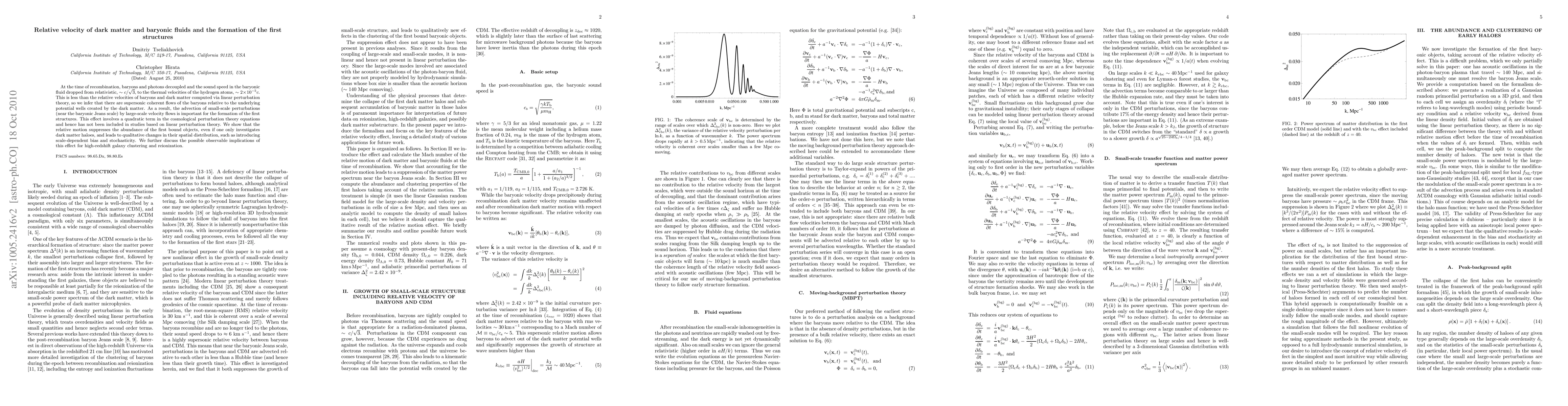 This paper investigates the impact of relative velocities between baryonic fluids and dark matter on the formation of the first cosmic structures, revealing that supersonic flows of baryons relative to dark matter potential wells suppress the abundance of early bound objects and alter their spatial distribution. The study highlights the importance of non-linear effects in cosmological perturbation theory for understanding high-redshift galaxy clustering and reionization.