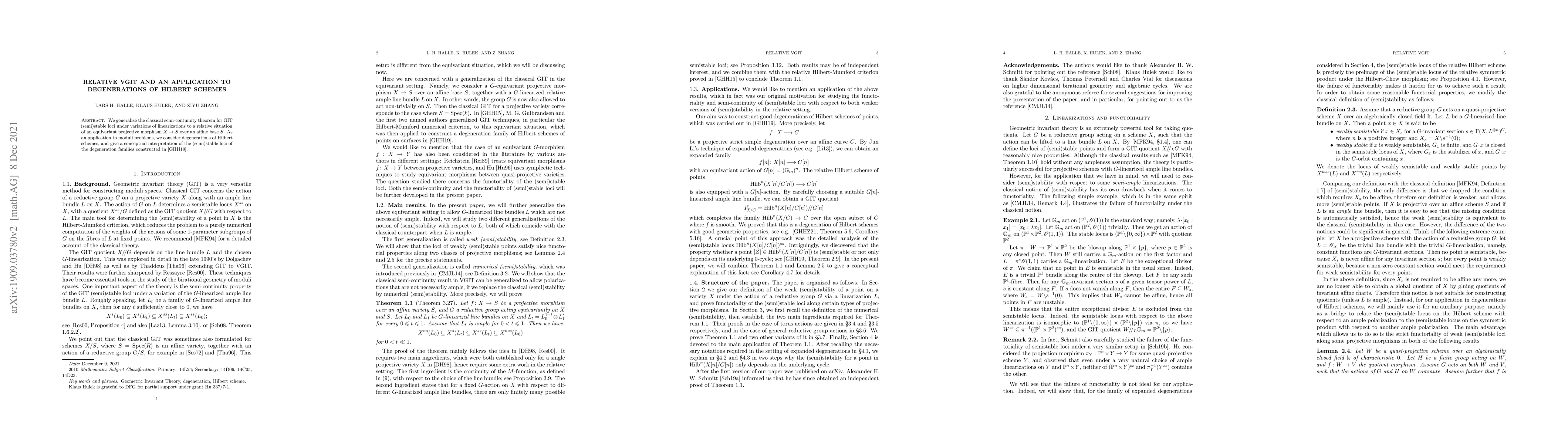 We generalize the classical semi-continuity theorem for GIT (semi)stable loci under variations of linearizations to a relative situation of an equivariant projective morphism from X to an affine base S. As an application to moduli problems, we consider degenerations of Hilbert schemes, and give a conceptual interpretation of the (semi)stable loci of the degeneration families constructed by Gulbrandsen-Halle-Hulek.