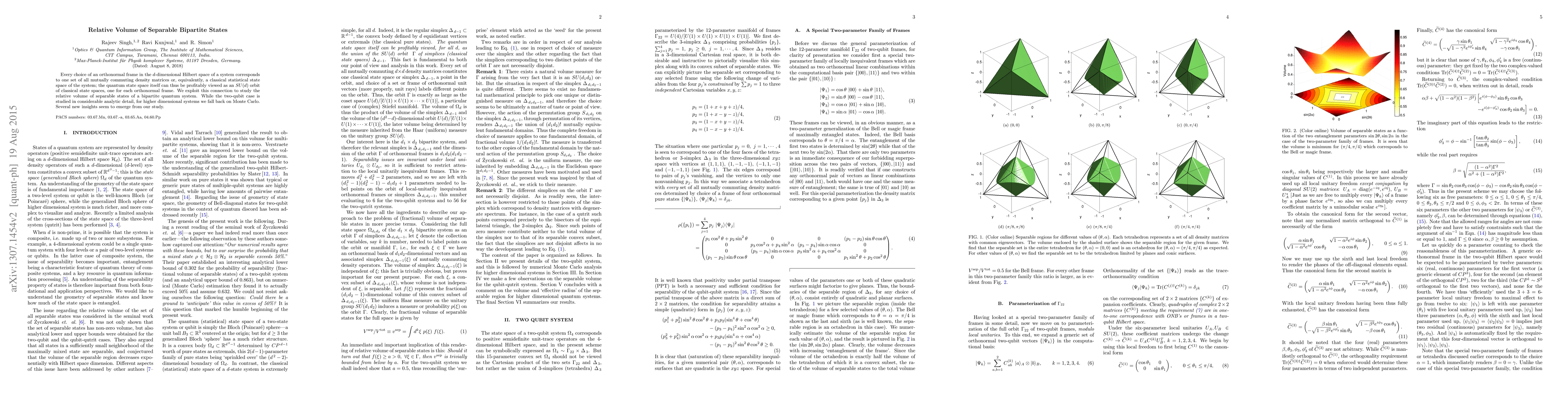 Every choice of an orthonormal frame in the d-dimensional Hilbert space of a system corresponds to one set of all mutually commuting density matrices or, equivalently, a classical statistical state space of the system; the quantum state space itself can thus be profitably viewed as an SU(d) orbit of classical state spaces, one for each orthonormal frame. We exploit this connection to study the relative volume of separable states of a bipartite quantum system. While the two-qubit case is studied in considerable analytic detail, for higher dimensional systems we fall back on Monte Carlo. Several new insights seem to emerge from our study.