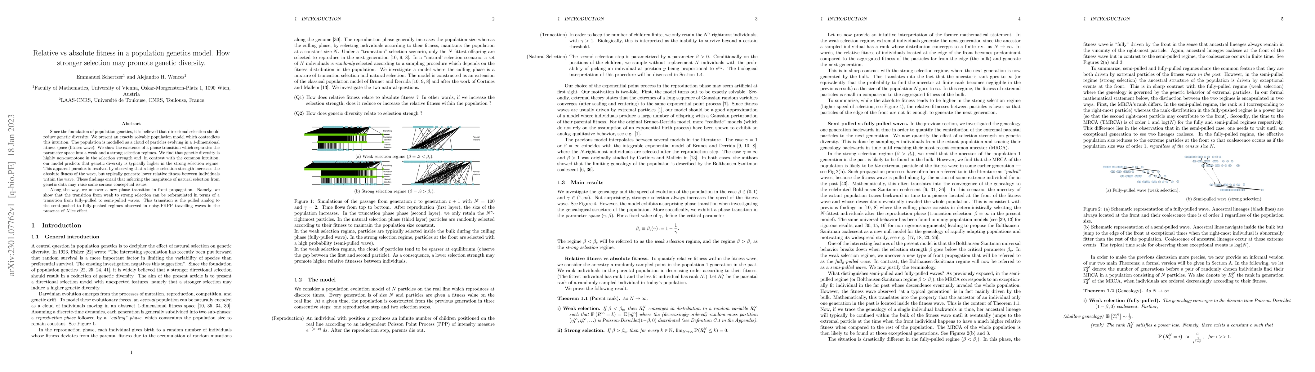 Since the foundation of population genetics, it is believed that directional selection should reduce genetic diversity. We present an exactly solvable population model which contradicts this intuition. The population is modelled as a cloud of particles evolving in a 1-dimensional fitness space (fitness wave). We show the existence of a phase transition which separates the parameter space into a weak and a strong selection regimes. We find that genetic diversity is highly non-monotone in the selection strength and, in contrast with the common intuition, our model predicts that genetic diversity is typically higher in the strong selection regime. This apparent paradox is resolved by observing that a higher selection strength increases the absolute fitness of the wave, but typically generate lower relative fitness between individuals within the wave. These findings entail that inferring the magnitude of natural selection from genetic data may raise some serious conceptual issues. Along the way, we uncover a new phase transition in front propagation. Namely, we show that the transition from weak to strong selection can be reformulated in terms of a transition from fully-pulled to semi-pulled waves. This transition is the pulled analog to the semi-pushed to fully-pushed regimes observed in noisy-FKPP travelling waves in the presence of Allee effect.