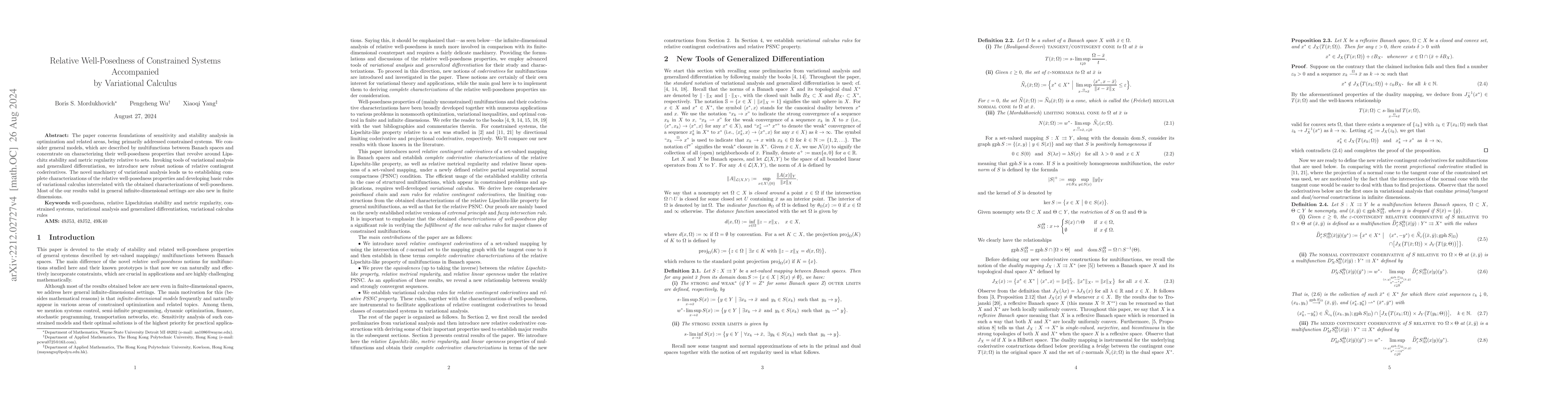 The paper concerns foundations of sensitivity and stability analysis, being primarily addressed constrained systems. We consider general models, which are described by multifunctions between Banach spaces and concentrate on characterizing their well-posedness properties that revolve around Lipschitz stability and metric regularity relative to sets. The enhanced relative well-posedness concepts allow us, in contrast to their standard counterparts, encompassing various classes of constrained systems. Invoking tools of variational analysis and generalized differentiation, we introduce new robust notions of relative coderivatives. The novel machinery of variational analysis leads us to establishing complete characterizations of the relative well-posedness properties with further applications to stability of affine variational inequalities. Most of the obtained results valid in general infinite-dimensional settings are also new in finite dimensions.