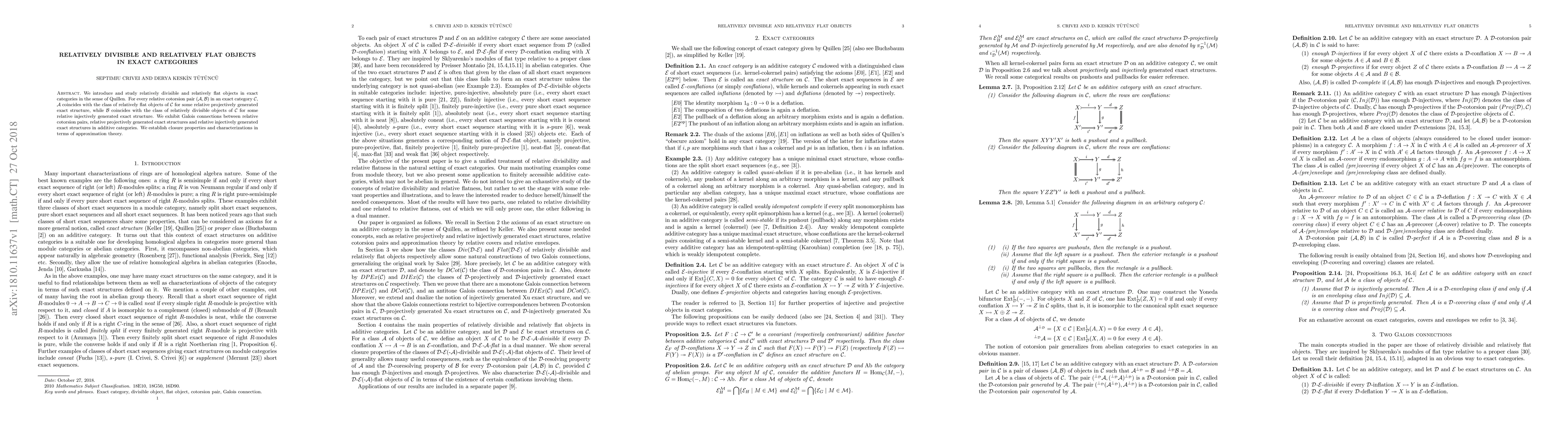 This paper investigates relatively divisible and relatively flat objects within exact categories, showing that these classes correspond to specific cotorsion pairs under projectively and injectively generated exact structures. It also establishes Galois connections between these concepts and discusses closure properties and characterizations via approximation theory.
