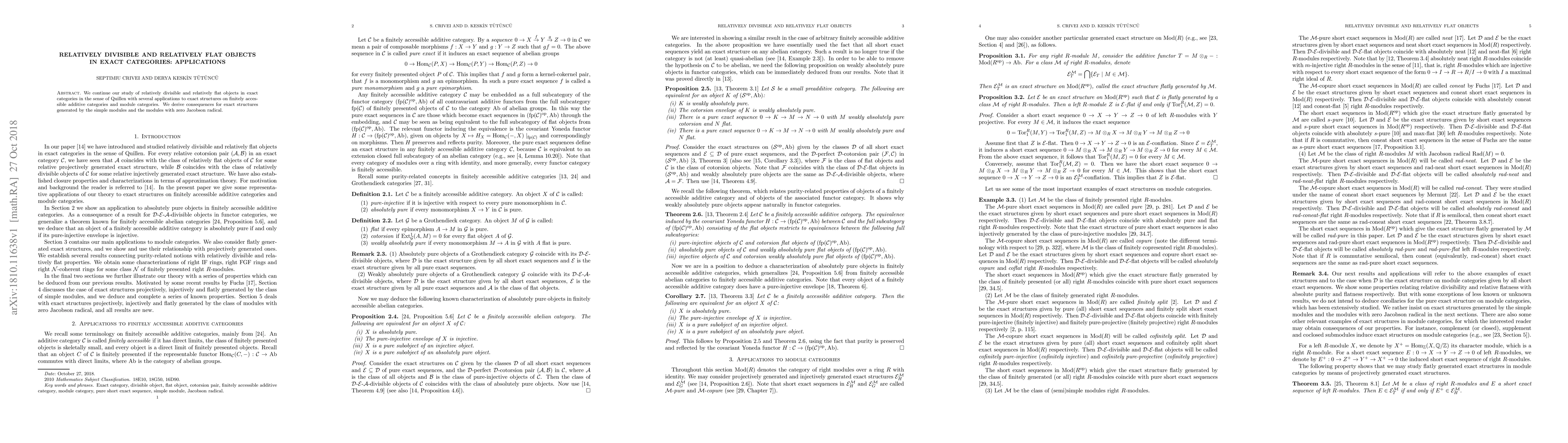 Summary: This paper explores relatively divisible and relatively flat objects in Quillen's exact categories, with applications to exact structures in finitely accessible additive categories and module categories, focusing on exact structures generated by simple modules and modules with zero Jacobson radical.