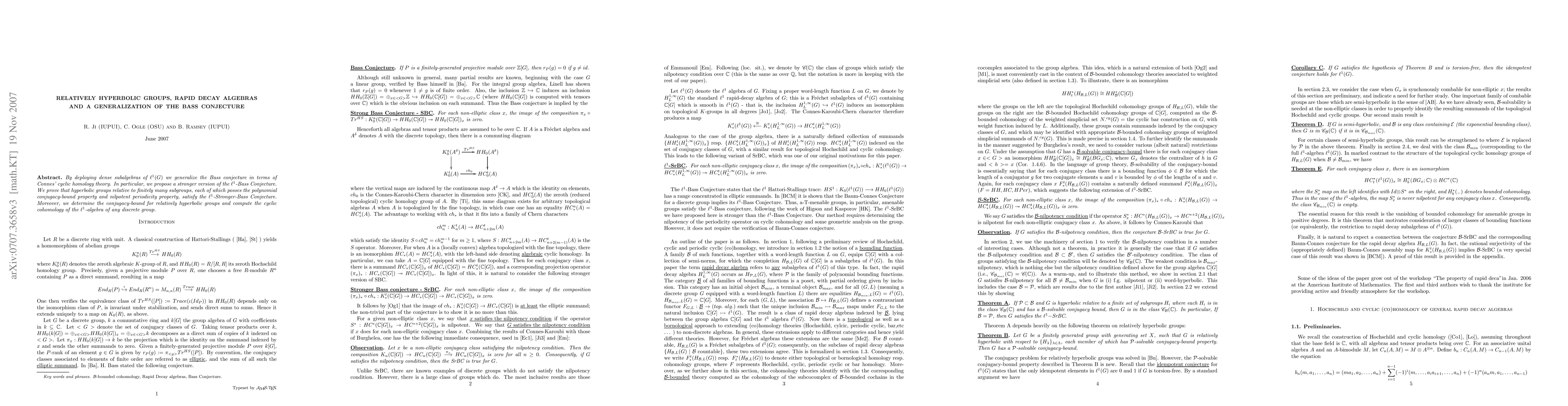 By deploying dense subalgebras of $\ell^1(G)$ we generalize the Bass conjecture in terms of Connes' cyclic homology theory. In particular, we propose a stronger version of the $\ell^1$-Bass Conjecture. We prove that hyperbolic groups relative to finitely many subgroups, each of which posses the polynomial conjugacy-bound property and nilpotent periodicity property, satisfy the $\ell^1$-Stronger-Bass Conjecture. Moreover, we determine the conjugacy-bound for relatively hyperbolic groups and compute the cyclic cohomology of the $\ell^1$-algebra of any discrete group.