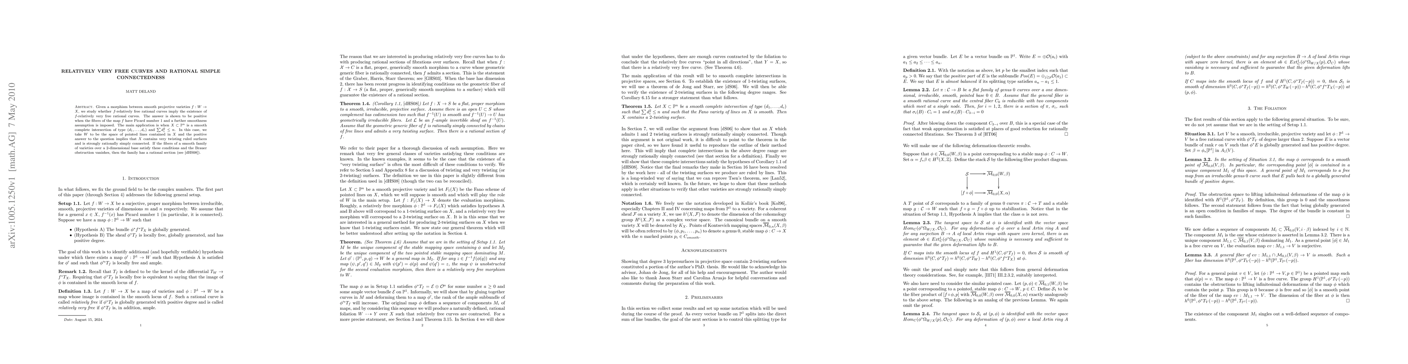 This research demonstrates that if $f$-relatively free rational curves exist for a morphism between smooth projective varieties, then $f$-relatively very free rational curves also exist under certain conditions, specifically when fibers have Picard number 1 and a smoothness assumption is met. The result applies to smooth complete intersections where the sum of squared degrees is less than or equal to the ambient projective space dimension, showing strong rational simple connectedness and existence of twisting ruled surfaces.