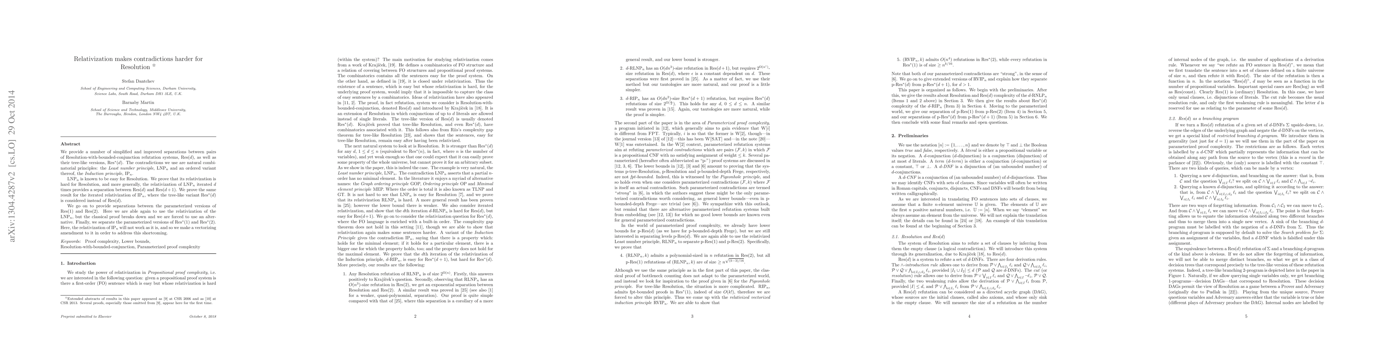 We provide a number of simplified and improved separations between pairs of Resolution-with-bounded-conjunction refutation systems, Res(d), as well as their tree-like versions, Res*(d). The contradictions we use are natural combinatorial principles: the Least number principle, LNP_n and an ordered variant thereof, the Induction principle, IP_n. LNP_n is known to be easy for Resolution. We prove that its relativisation is hard for Resolution, and more generally, the relativisation of LNP_n iterated d times provides a separation between Res(d) and Res(d+1). We prove the same result for the iterated relativisation of IP_n, where the tree-like variant Res*(d) is considered instead of Res(d). We go on to provide separations between the parameterized versions of Res(1) and Res(2). Here we are able again to use the relativisation of the LNP_n, but the classical proof breaks down and we are forced to use an alternative. Finally, we separate the parameterized versions of Res*(1) and Res*(2). Here, the relativisation of IP_n will not work as it is, and so we make a vectorising amendment to it in order to address this shortcoming