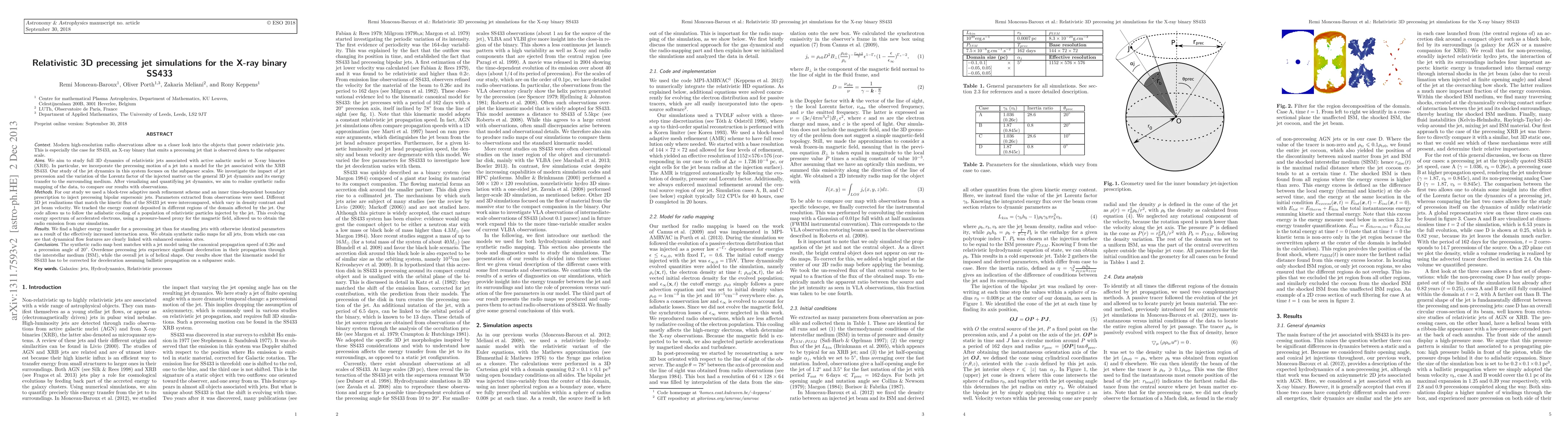 Context. Modern high resolution observations allow to view closer into the objects powering relativistic jets. This is especially the case for SS433, an X-ray binary from which a precessing jet is observed down to the sub-parsec scale. Aims. We want to study full 3D dynamics of relativistic jets associated with AGN or XRB. We study the precessing motion of a jet as a model for the jet associated with the XRB SS433. Our study of the jet dynamics in this system focuses on the sub-parsec scales. We investigate the impact of jet precession and the variation of the Lorentz factor of the injected matter on the general 3D jet dynamics and its energy transfer to the surrounding medium. We realize synthetic radio mapping of the data, to compare our results with observations. Methods. For our study we use the code MPI-AMRVAC with SRHD model of a baryonic jet. We use a AMR scheme and an inner time-dependent boundary prescription to inject the jets. Parameters extracted from observations were used. 3D jet realizations that match the SS433 jet are intercompared. We track the energy content, as deposited in different regions of the domain affected by the jet. Our code also follows a population of particles injected with the jet. This evolving energy spectrum of accelerated electrons, allows to obtain the radio emission from our simulation. Results. we obtain meaningful observations. We find increased energy transfer for a precessing jet compared to a standing jets. We obtain synthetic radio maps for all jets. Conclusions. The synthetic radio map matches best for a model using the canonical kinematic model. Overdense precessing jets experience significant deceleration in their propagation through the ISM, and while the overall jet is of helical shape. This argument show that the kinematic model for SS433 assuming ballistic propagation has to be corrected for this decelretaion.