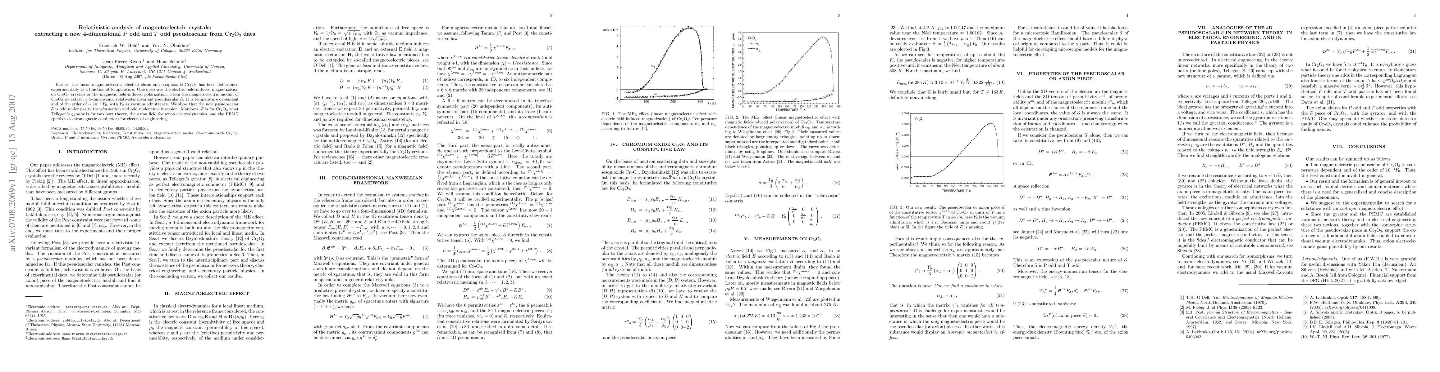Earlier, the linear magnetoelectric effect of chromium sesquioxide Cr_2 O_3 has been determined experimentally as a function of temperature. One measures the electric field-induced magnetization on Cr_2 O_3 crystals or the magnetic field-induced polarization. From the magnetoelectric moduli of Cr_2 O_3 we extract a 4-dimensional relativistic invariant pseudoscalar \tilde\alpha. It is temperature dependent and of the order of ~ 10^{-4} Y_0, with Y_0 as vacuum admittance. We show that the new pseudoscalar \tilde\alpha is odd under parity transformation and odd under time inversion. Moreover, \tilde\alpha is for Cr_2 O_3 what Tellegen's gyrator is for two port theory, the axion field for axion electrodynamics, and the PEMC (perfect electromagnetic conductor) for electrical engineering.