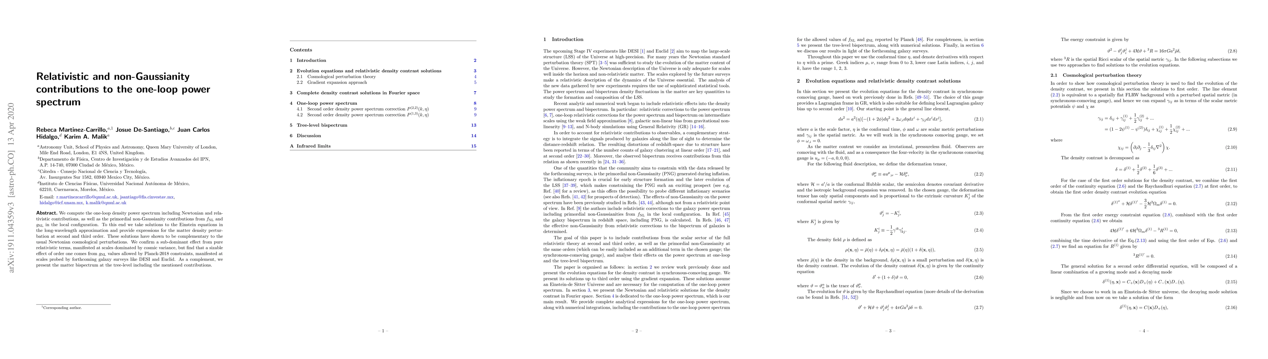 This paper calculates the one-loop power spectrum for density perturbations, incorporating both relativistic and Newtonian effects, alongside primordial non-Gaussianity contributions from $f_{\rm NL}$ and $g_{\rm NL}$. The study finds that while relativistic terms are minor, non-Gaussianity from $g_{\rm NL}$ significantly impacts scales observable in future galaxy surveys.
