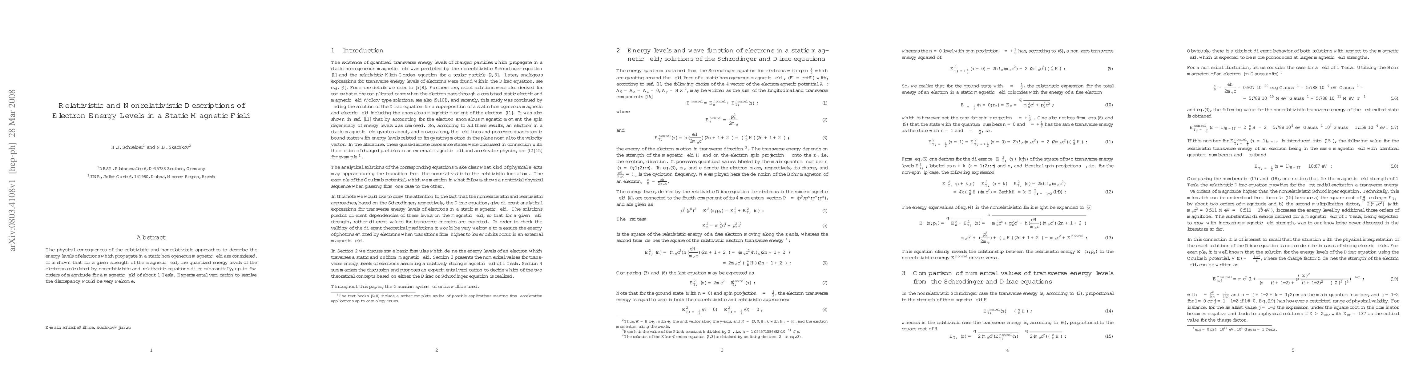 The physical consequences of the relativistic and nonrelativistic approaches to describe the energy levels of electrons which propagate in a static homogeneous magnetic field are considered. It is shown that for a given strength of the magnetic field, the quantized energy levels of the electrons calculated by nonrelativistic and relativistic equations differ substantially, up to few orders of magnitude for a magnetic field of about 1 Tesla. Experimental verification to resolve the discrepancy would be very welcome.