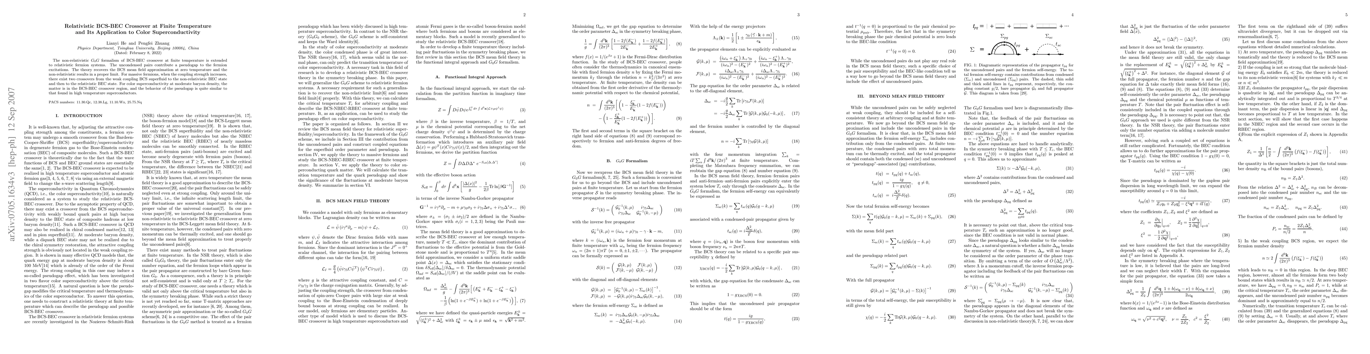 This paper extends the BCS-BEC crossover theory to relativistic fermions at finite temperature, revealing a pseudogap in fermion excitations. It shows two crossovers in massive fermions from BCS to relativistic BEC states, and applies the theory to color superconductivity, finding similarities to high-temperature superconductors.