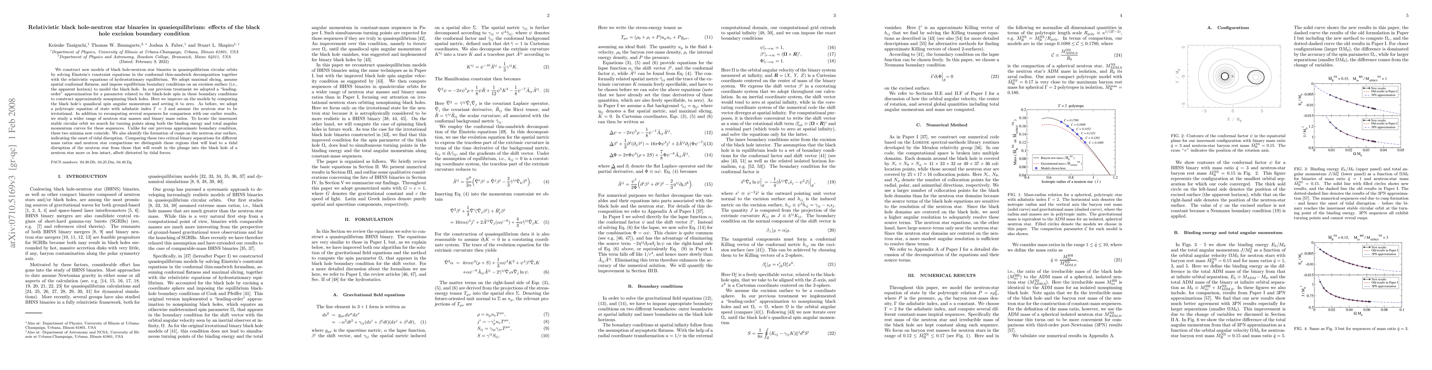 We construct new models of black hole-neutron star binaries in quasiequilibrium circular orbits by solving Einstein's constraint equations in the conformal thin-sandwich decomposition together with the relativistic equations of hydrostationary equilibrium. We adopt maximal slicing, assume spatial conformal flatness, and impose equilibrium boundary conditions on an excision surface (i.e., the apparent horizon) to model the black hole. In our previous treatment we adopted a "leading-order" approximation for a parameter related to the black-hole spin in these boundary conditions to construct approximately nonspinning black holes. Here we improve on the models by computing the black hole's quasilocal spin angular momentum and setting it to zero. As before, we adopt a polytropic equation of state with adiabatic index Gamma=2 and assume the neutron star to be irrotational. In addition to recomputing several sequences for comparison with our earlier results, we study a wider range of neutron star masses and binary mass ratios. To locate the innermost stable circular orbit we search for turning points along both the binding energy and total angular momentum curves for these sequences. Unlike for our previous approximate boundary condition, these two minima now coincide. We also identify the formation of cusps on the neutron star surface, indicating the onset of tidal disruption. Comparing these two critical binary separations for different mass ratios and neutron star compactions we distinguish those regions that will lead to a tidal disruption of the neutron star from those that will result in the plunge into the black hole of a neutron star more or less intact, albeit distorted by tidal forces.