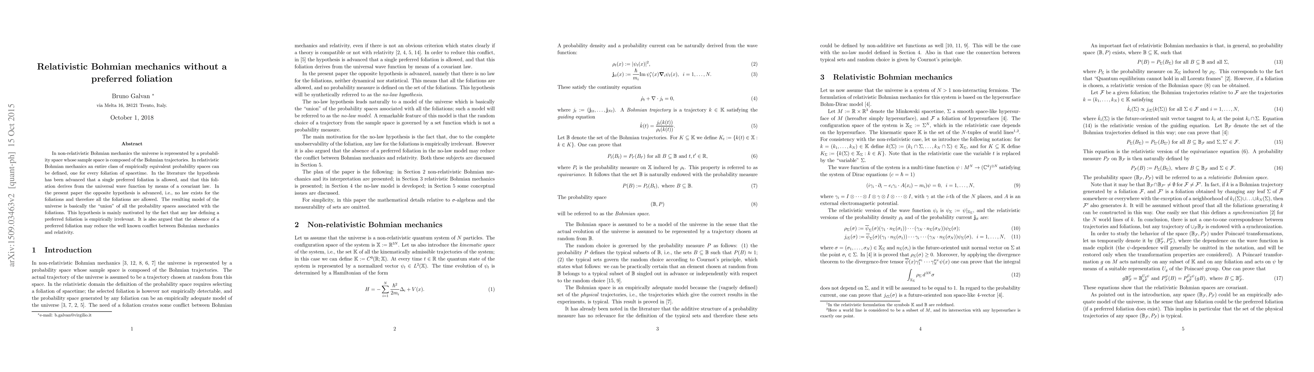 This paper explores relativistic Bohmian mechanics without a preferred spacetime foliation, proposing that all foliations are equally valid. It argues that any law defining a preferred foliation is empirically irrelevant and suggests that this approach may mitigate conflicts with relativity.
