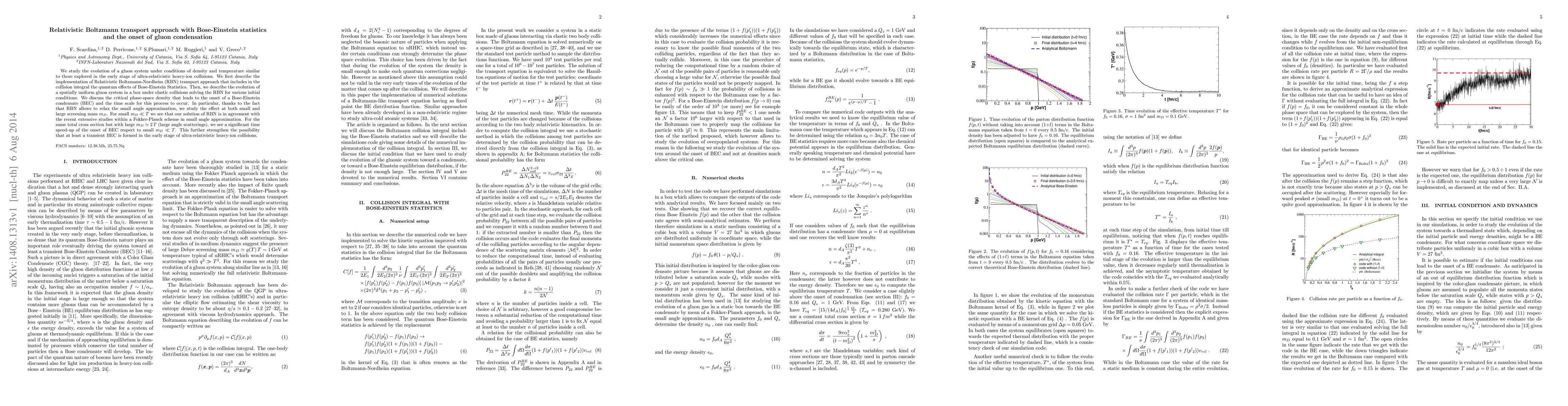 We study the evolution of a gluon system under conditions of density and temperature similar to those explored in the early stage of ultra-relativistic heavy-ion collisions. We first describe the implementation of Relativistic Boltzmann-Nordheim (RBN) transport approach that includes in the collision integral the quantum effects of Bose-Einstein Statistics. Then, we describe the evolution of a spatially uniform gluon system in a box under elastic collisions solving the RBN for various initial conditions. We discuss the critical phase-space density that leads to the onset of a Bose-Einstein condensate (BEC) and the time scale for this process to occur. In particular, thanks to the fact that RBN allows to relax the small angle approximation, we study the effect at both small and large screening mass $ m_{D} $. For small $ m_{D}\ll T $ we see that our solution of RBN is in agreement with the recent extensive studies within a Fokker-Planck scheme in small angle approximation. For the same total cross section but with large $ m_{D}\simeq 2\, T $ (large angle scatterings), we see a significant time speed-up of the onset of BEC respect to small $m_{D}\ll T$. This further strengthen the possibility that at least a transient BEC is formed in the early stage of ultra-relativistic heavy-ion collisions.