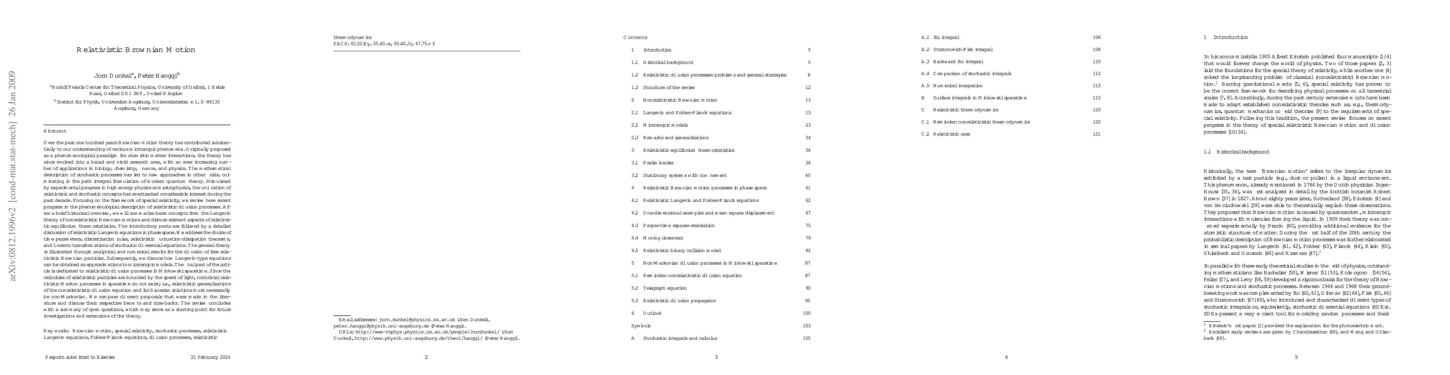 This paper reviews recent progress in describing relativistic diffusion processes using special relativity, focusing on Langevin equations and their application to free relativistic Brownian particles and spacetime diffusion.