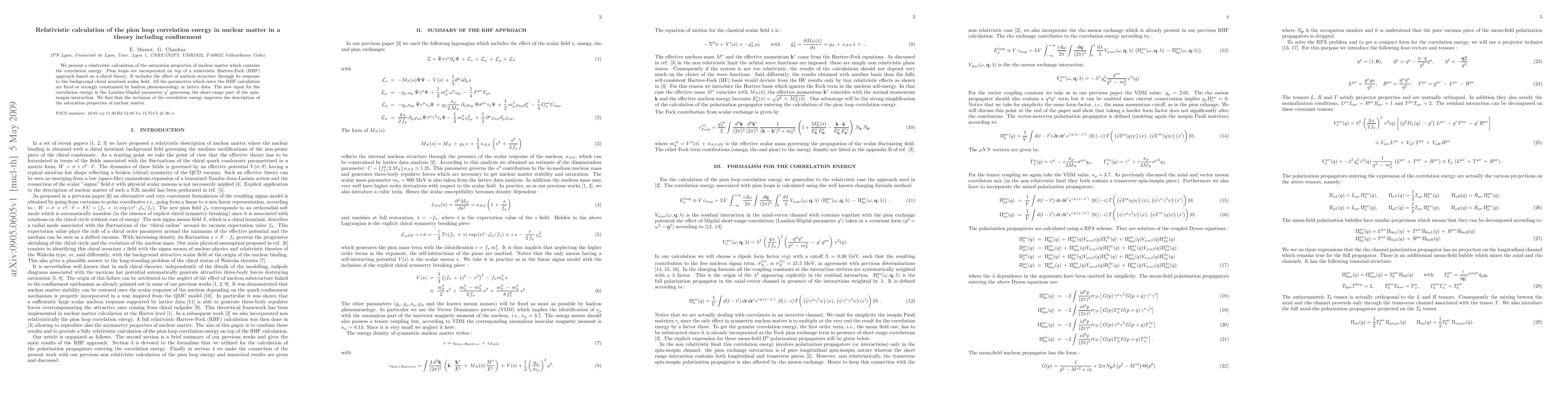 We present a relativistic calculation of the saturation properties of nuclear matter which contains the correlation energy. Pion loops are incorporated on top of a relativistic Hartree-Fock (RHF) approach based on a chiral theory. It includes the effect of nucleon structure through its response to the background chiral invariant scalar field. All the parameters which enter the RHF calculation are fixed or strongly constrained by hadron phenomenology or lattice data. The new input for the correlation energy is the Landau-Migdal parameter g? governing the short-range part of the spin-isospin interaction. We find that the inclusion of the correlation energy improves the description of the saturation properties of nuclear matter.