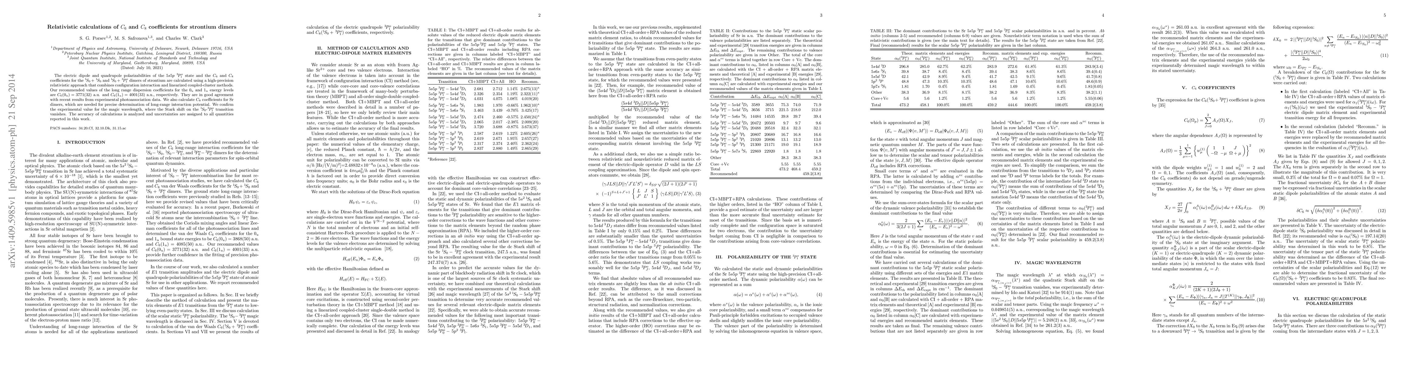 The electric dipole and quadrupole polarizabilities of the $5s5p~^3\!P_1^o$ state and the $C_6$ and $C_8$ coefficients for the $^1\!S_0 +\, ^1\!S_0$ and $^1\!S_0 +\, ^3\!P_1^o$ dimers of strontium are calculated using a high-precision relativistic approach that combines configuration interaction and linearized coupled-cluster methods. Our recommended values of the long range dispersion coefficients for the $0_u$ and $1_u$ energy levels are $C_6(0_u)=3771(32)$ a.u. and $C_6(1_u)= 4001(33)$ a.u., respectively. They are in good agreement with recent results from experimental photoassociation data. We also calculate $C_8$ coefficients for Sr dimers, which are needed for precise determination of long-range interaction potential. We confirm the experimental value for the magic wavelength, where the Stark shift on the $^1\!S_0$-$^3\!P_1^o$ transition vanishes. The accuracy of calculations is analyzed and uncertainties are assigned to all quantities reported in this work.