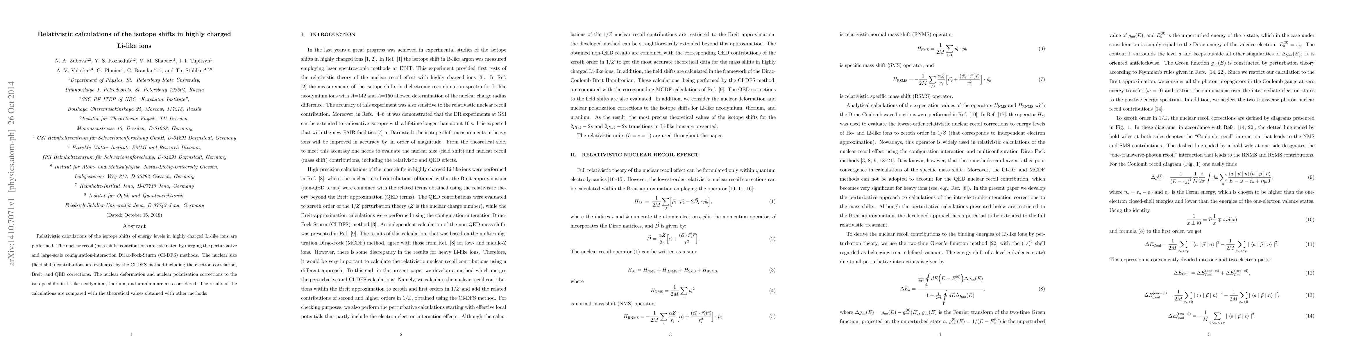 This paper presents relativistic calculations of isotope shifts in highly charged Li-like ions, combining perturbative and large-scale configuration-interaction Dirac-Fock-Sturm methods for nuclear recoil and field shifts, and evaluates nuclear deformation and polarization corrections. The results are compared with other theoretical approaches.