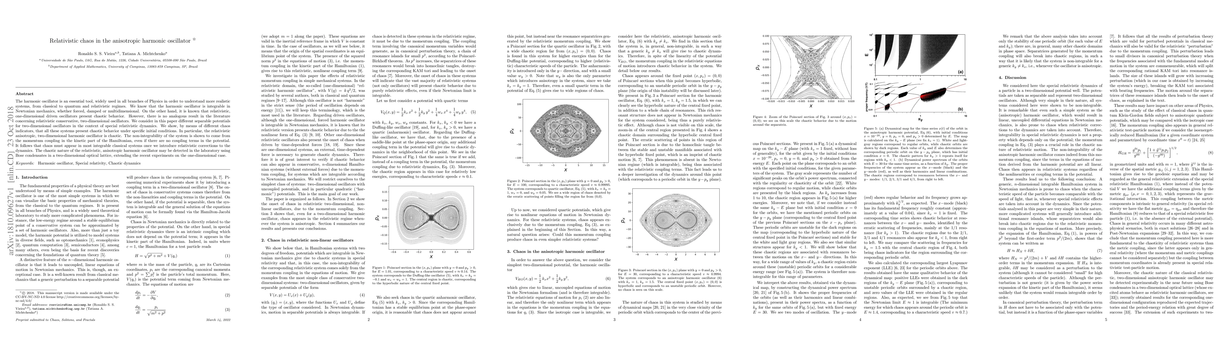 This paper investigates the relativistic dynamics of two-dimensional anisotropic harmonic oscillators, demonstrating that they exhibit chaotic behavior under specific initial conditions due to momentum coupling in the kinetic Hamiltonian. This suggests that relativistic corrections can induce chaos in classically integrable systems.