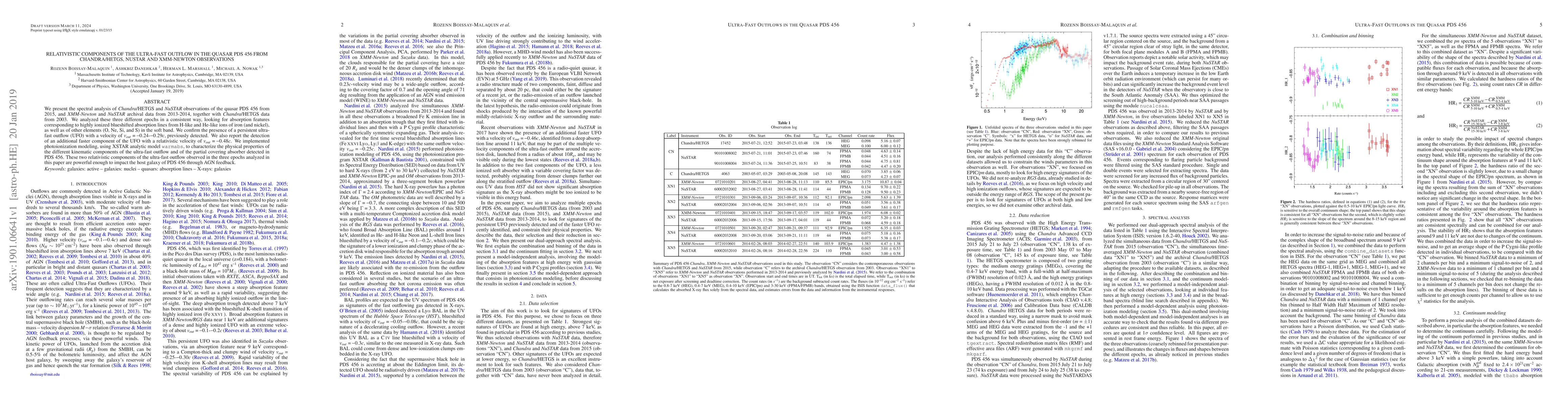 Astronomers detected two ultra-fast outflows in quasar PDS 456 with velocities up to -0.48c, using Chandra/HETGS, NuSTAR, and XMM-Newton observations.