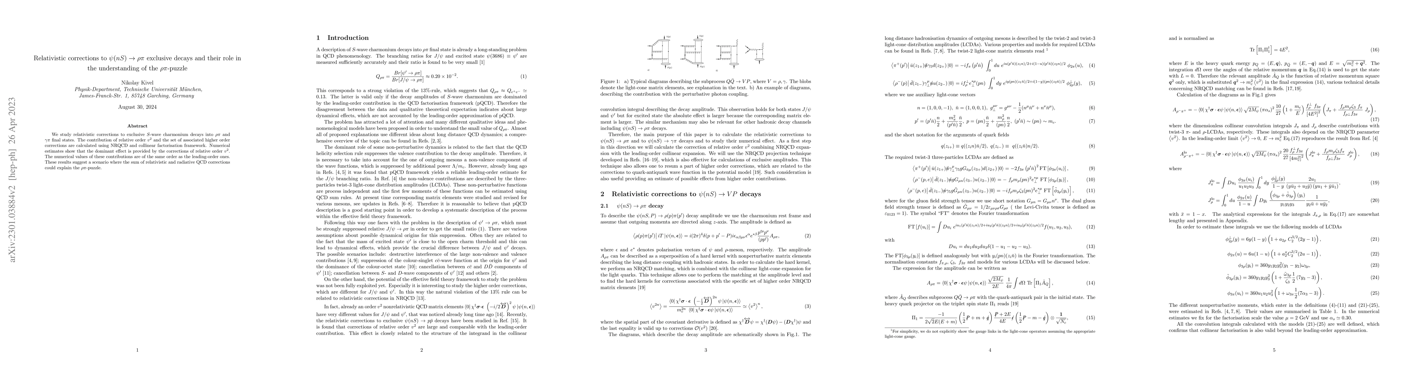 This paper investigates relativistic corrections to $S$-wave charmonium decays into $\rho\pi$ and $\gamma\pi$ final states, revealing that corrections of relative order $v^2$ are significant. These corrections may help resolve the $\rho\pi$-puzzle by providing a plausible explanation when combined with radiative QCD corrections.