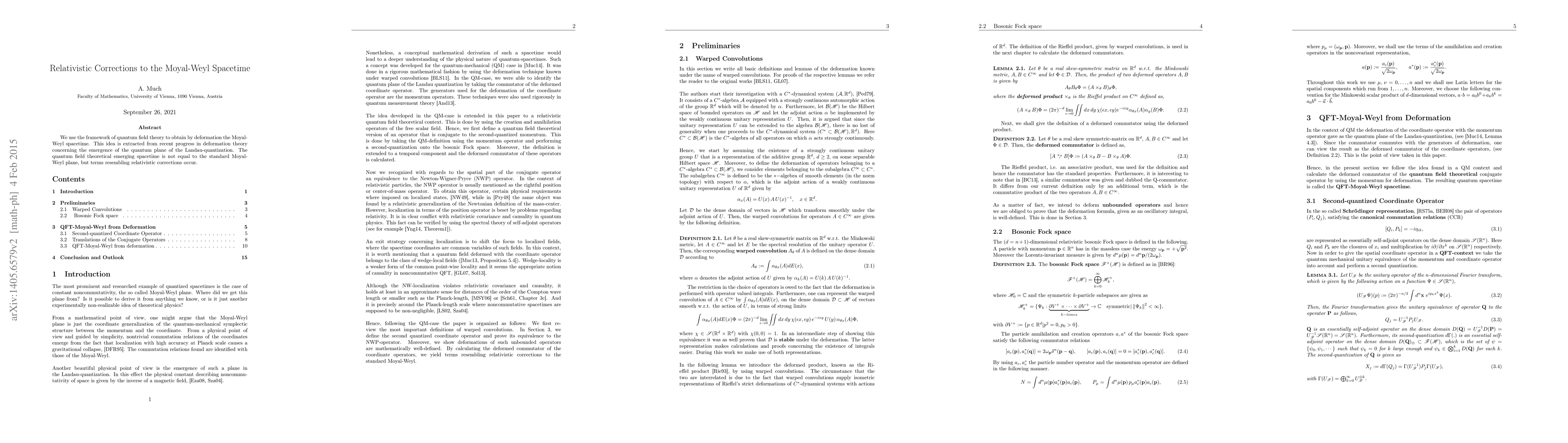 This paper introduces a relativistic Moyal-Weyl spacetime through a deformation procedure in quantum field theory, yielding spacetime with relativistic corrections distinct from the standard Moyal-Weyl plane. The approach draws on advancements in deformation theory related to Landau quantization.