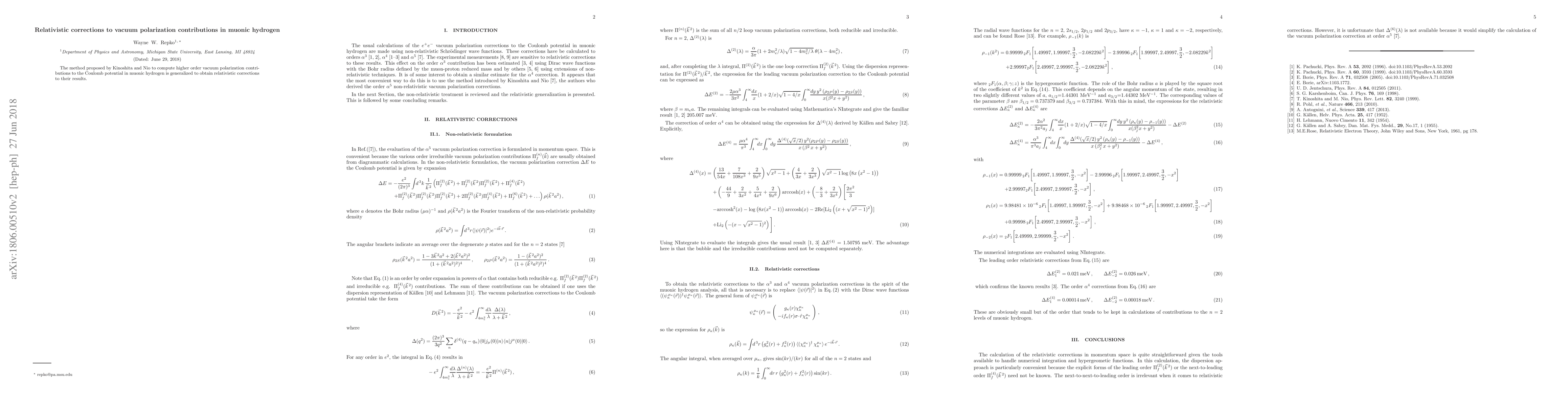 The method proposed by Kinoshita and Nio to compute higher order vacuum polarization contributions to the Coulomb potential in muonic hydrogen is generalized to obtain relativistic corrections to their results.