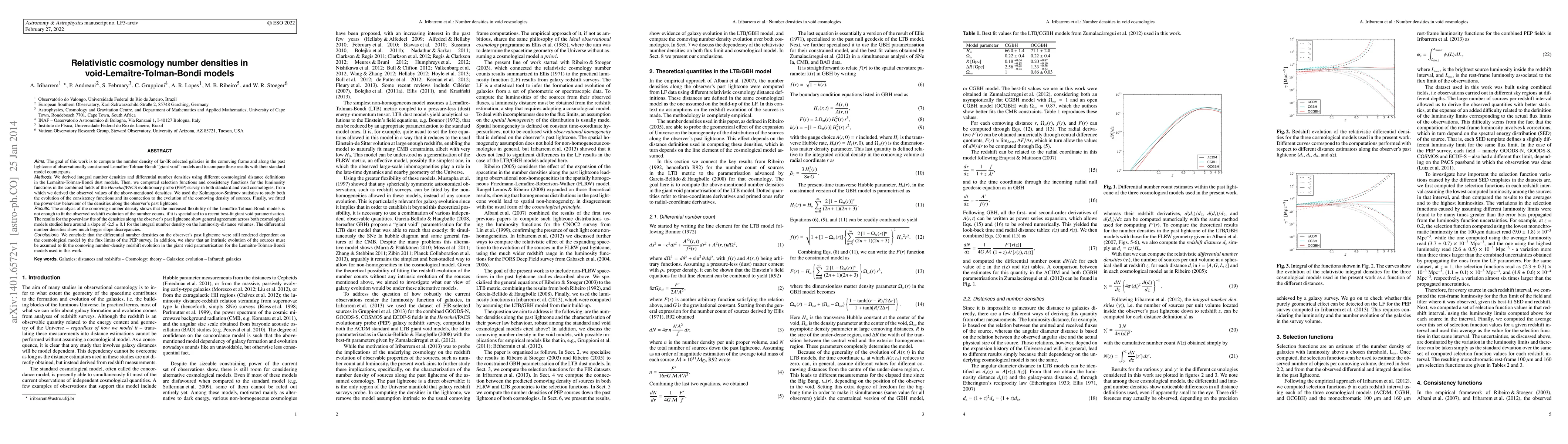The goal of this work is to compute the number density of far-IR selected galaxies in the comoving frame and along the past lightcone of observationally constrained LTB models and to compare those results with their standard model counterparts. We derived integral number densities and differential number densities using different cosmological distance definitions in the LTB models. Then, we computed selection functions and consistency functions for the luminosity functions in the combined fields of the Herschel/PACS evolutionary probe (PEP) survey in both standard and void cosmologies, from which we derived the observed values of the above-mentioned densities. We used the Kolmogorov-Smirnov statistics to study both the evolution of the consistency functions and its connection to the evolution of the comoving density of sources. Finally, we fitted the power-law behaviour of the densities along the observer's past lightcone. The analysis of the comoving number density shows that the increased flexibility of the LTB models is not enough to fit the observed redshift evolution of the number counts, if it is specialised to a recent best-fit giant void parametrisation. The results for the power-law fits of the densities along the observer's past lightcone show general agreement across both cosmological models studied here around a slope of -2.5 $\pm$ 0.1 for the integral number density on the luminosity-distance volumes. The differential number densities show much bigger slope discrepancies. We conclude that the differential number densities on the observer's past lightcone were still rendered dependent on the cosmological model by the flux limits of the PEP survey. In addition, we show that an intrinsic evolution of the sources must be assumed to fit the comoving number-density redshift evolution in the giant void parametrisation for the LTB models used in this work.