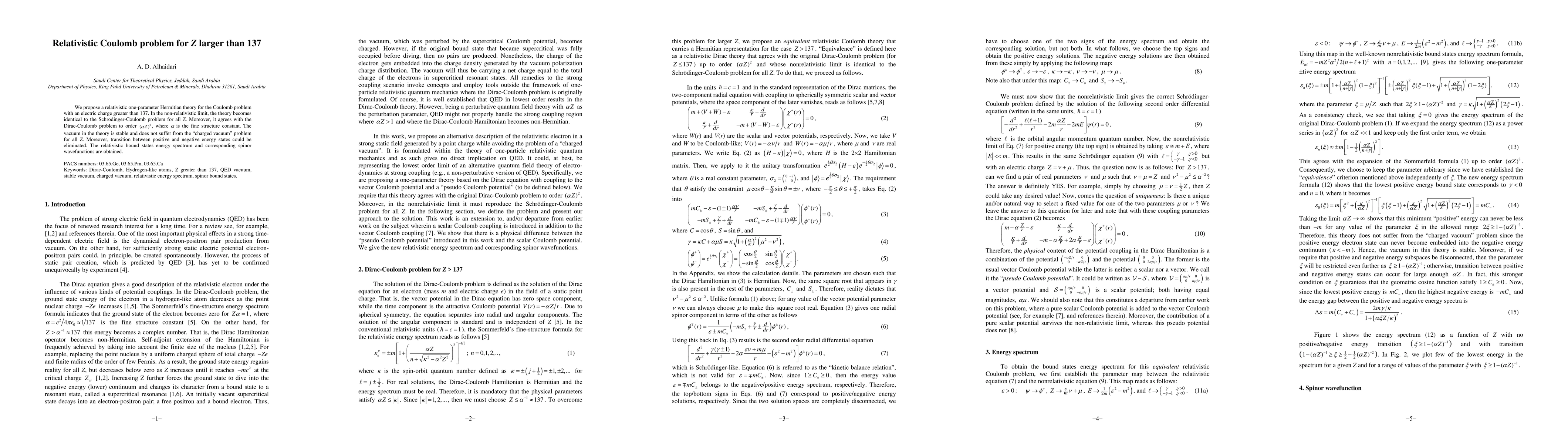 Researchers propose a relativistic theory for the Coulomb problem with high atomic charges, resolving issues like stable vacuum and negative energy states.