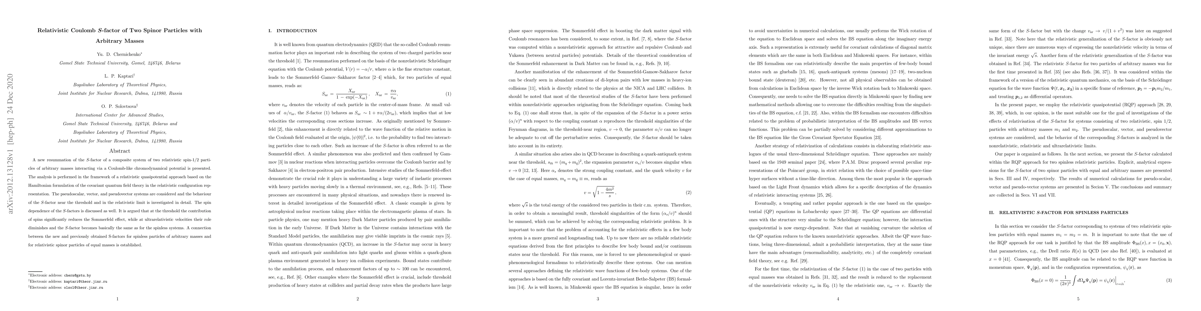 A new resummation of the $S$-factor of a composite system of two relativistic spin-1/2 particles of arbitrary masses interacting via a Coulomb-like chromodynamical potential is presented. The analysis is performed in the framework of a relativistic quasipotential approach based on the Hamiltonian formulation of the covariant quantum field theory in the relativistic configuration representation. The pseudoscalar, vector, and pseudovector systems are considered and the behaviour of the $S$-factor near the threshold and in the relativistic limit is investigated in detail. The spin dependence of the $S$-factors is discussed as well. It is argued that at the threshold the contribution of spins significantly reduces the Sommerfeld effect, while at ultrarelativistic velocities their role diminishes and the $S$-factor becomes basically the same as for the spinless systems. A connection between the new and previously obtained S-factors for spinless particles of arbitrary masses and for relativistic spinor particles of equal masses is established.