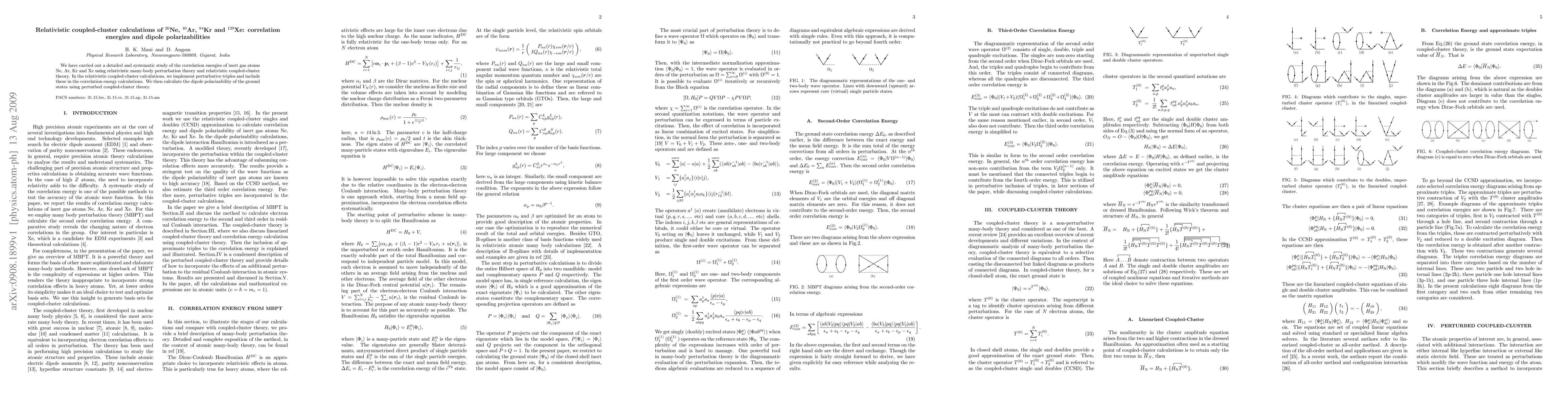 We have carried out a detailed and systematic study of the correlation energies of inert gas atoms Ne, Ar, Kr and Xe using relativistic many-body perturbation theory and relativistic coupled-cluster theory. In the relativistic coupled-cluster calculations, we implement perturbative triples and include these in the correlation energy calculations. We then calculate the dipole polarizability of the ground states using perturbed coupled-cluster theory.