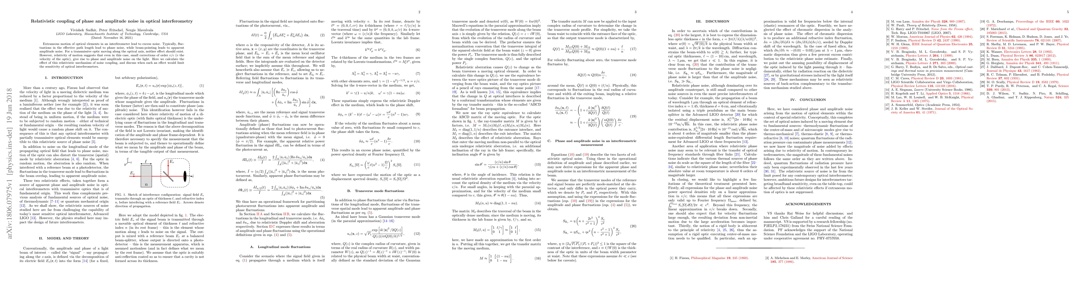 Extraneous motion of optical elements in an interferometer lead to excess noise. Typically, fluctuations in the effective path length lead to phase noise, while beam-pointing leads to apparent amplitude noise. For a transmissive optic moving along the optical axis, neither effect should exist. However, relativity of motion suggests that even in this case, small corrections of order $v/c$ ($v$ the velocity of the optic), give rise to phase and amplitude noise on the light. Here we calculate the effect of this relativistic mechanism of noise coupling, and discuss when such an effect would limit the sensitivity of optical interferometers.