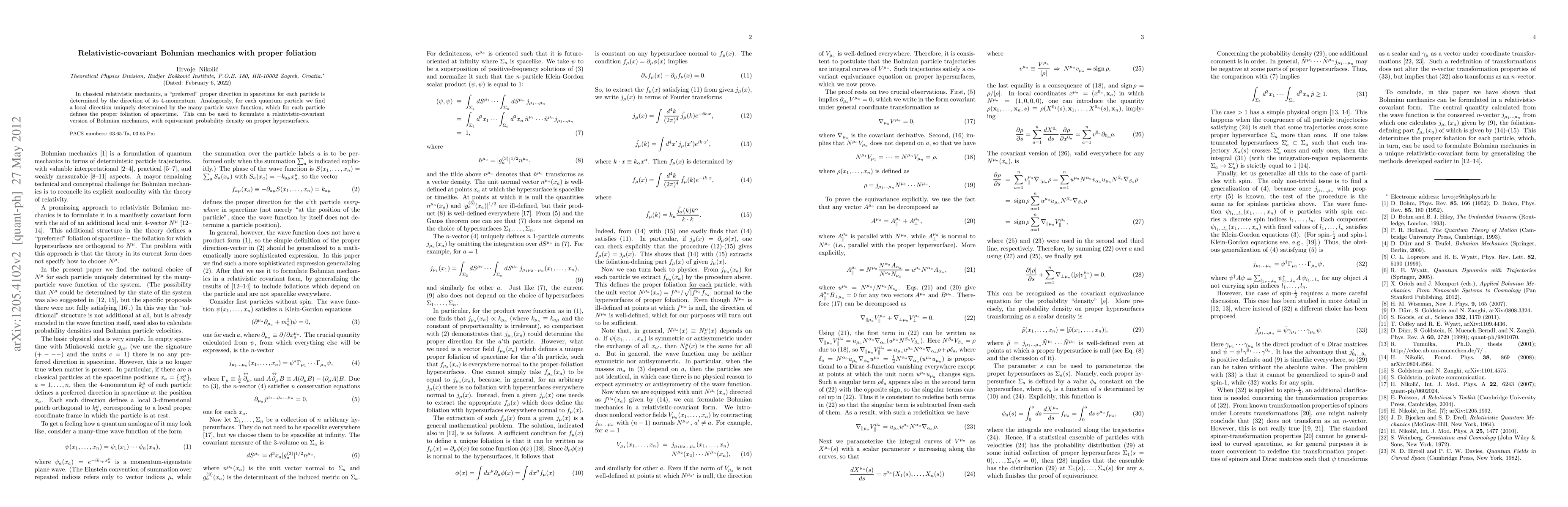 In classical relativistic mechanics, a "preferred" proper direction in spacetime for each particle is determined by the direction of its 4-momentum. Analogously, for each quantum particle we find a local direction uniquely determined by the many-particle wave function, which for each particle defines the proper foliation of spacetime. This can be used to formulate a relativistic-covariant version of Bohmian mechanics, with equivariant probability density on proper hypersurfaces.