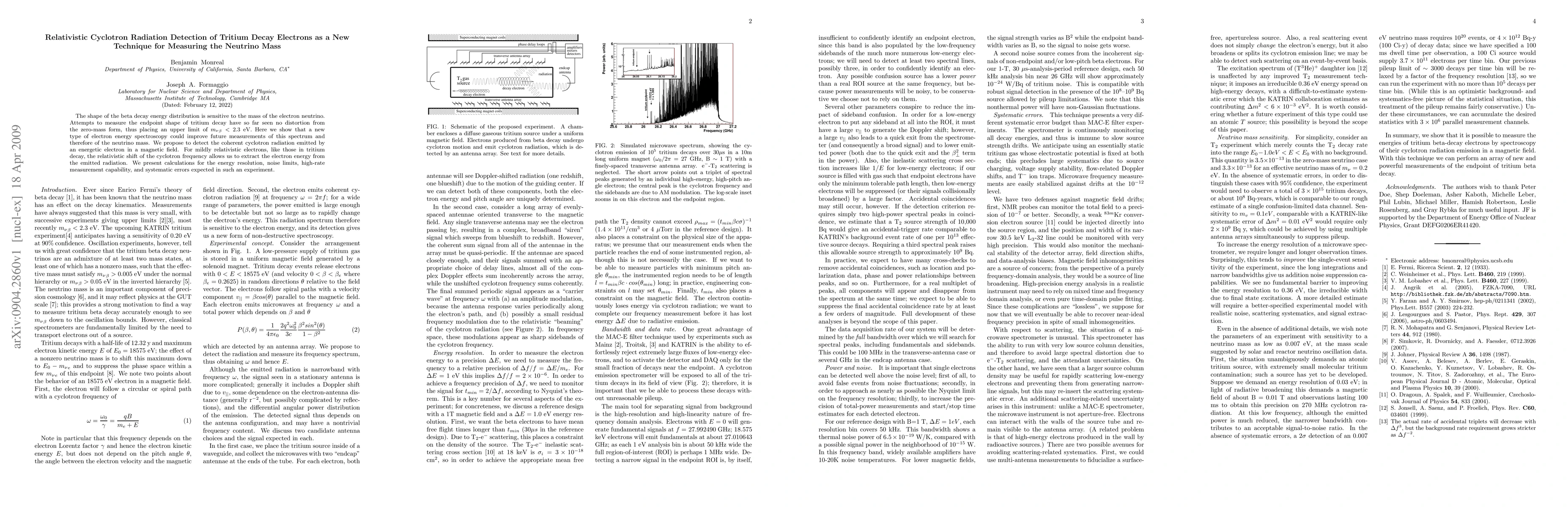 This paper proposes a novel technique using relativistic cyclotron radiation detection to measure the energy spectrum of tritium decay electrons, aiming to improve the precision of neutrino mass measurements. The method leverages the relativistic shift of the cyclotron frequency to determine electron energies, presenting calculations for expected energy resolution, noise limits, and systematic errors.