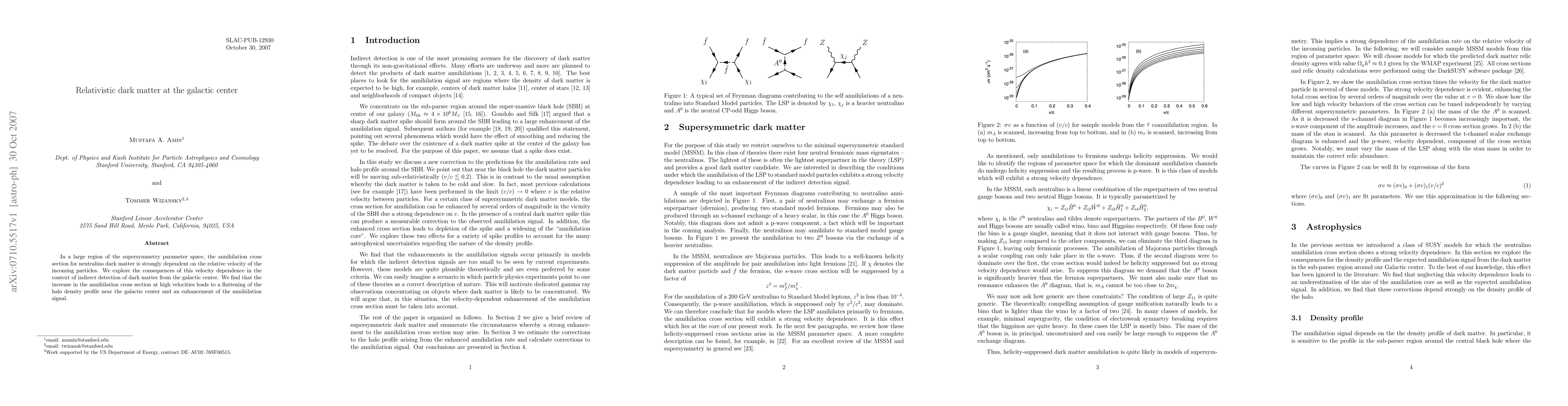 Summary: The paper investigates the impact of velocity-dependent annihilation cross sections for neutralino dark matter in supersymmetry, finding that high-velocity interactions lead to a flattened density profile near the galactic center and an amplified annihilation signal detectable indirectly.