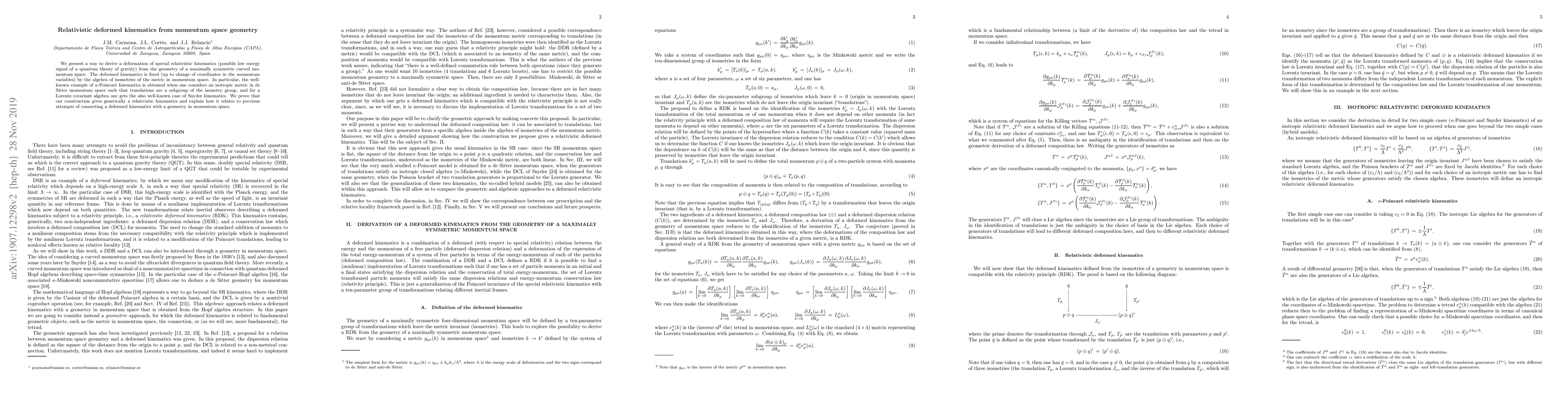 This paper derives a deformation of special relativistic kinematics from the geometry of a maximally symmetric curved momentum space, showing that the deformed kinematics is determined by the algebra of isometries. The $\kappa$-Poincaré and Snyder kinematics are examples obtained from specific metrics in de Sitter and Lorentz momentum spaces, respectively.