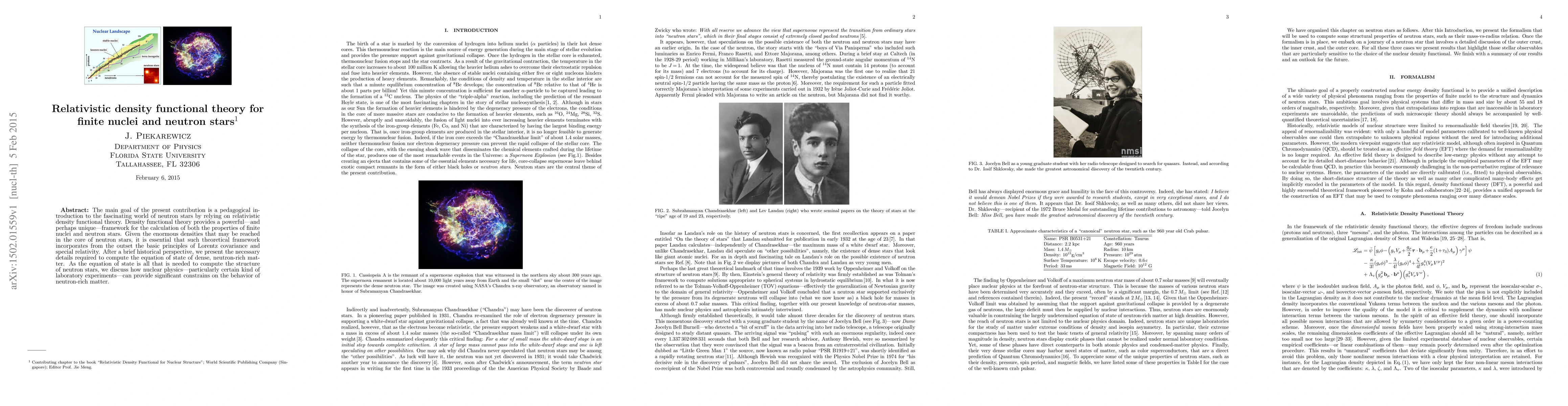 This paper provides a pedagogical introduction to neutron stars using relativistic density functional theory, emphasizing its application to both finite nuclei and neutron stars. It discusses the importance of incorporating Lorentz covariance and special relativity in the theoretical framework to accurately model the extreme densities found in neutron stars.