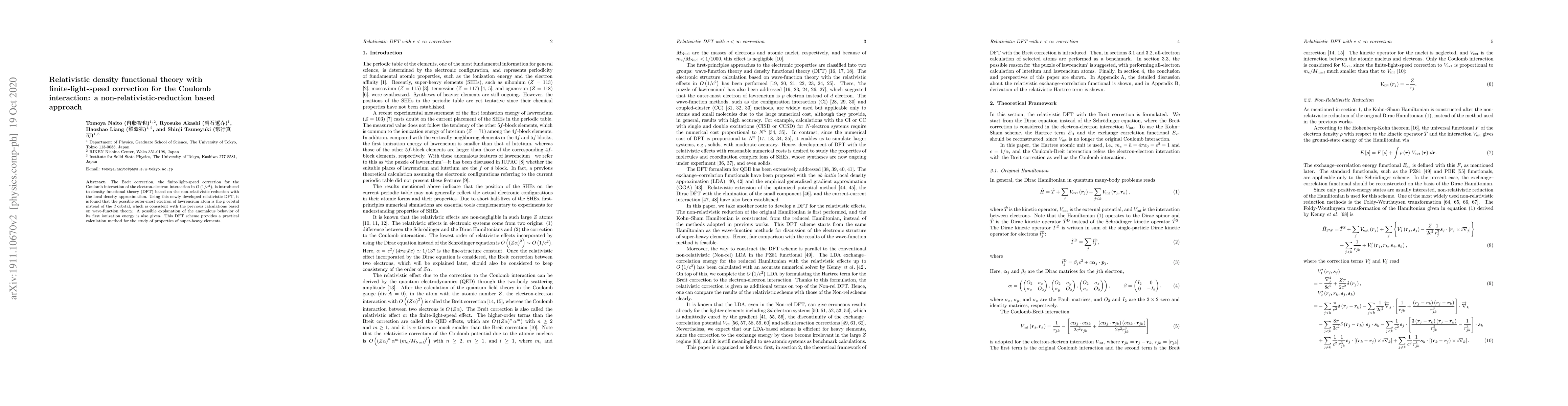 This paper introduces a relativistic density functional theory (DFT) with a finite-light-speed correction for the Coulomb interaction, based on non-relativistic reduction. The method correctly predicts the outermost electron of lawrencium as a $p$ orbital, explaining its first ionization energy anomaly.