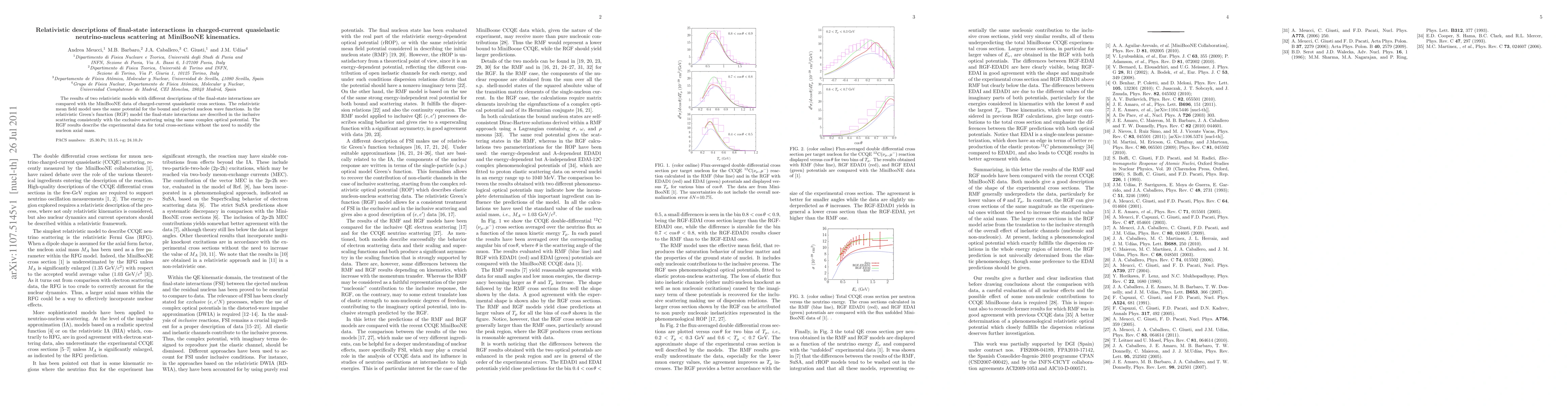 The results of two relativistic models with different descriptions of the final-state interactions are compared with the MiniBooNE data of charged-current quasielastic cross sections. The relativistic mean field model uses the same potential for the bound and ejected nucleon wave functions. In the relativistic Green's function (RGF) model the final-state interactions are described in the inclusive scattering consistently with the exclusive scattering using the same complex optical potential. The RGF results describe the experimental data for total cross-sections without the need to modify the nucleon axial mass.